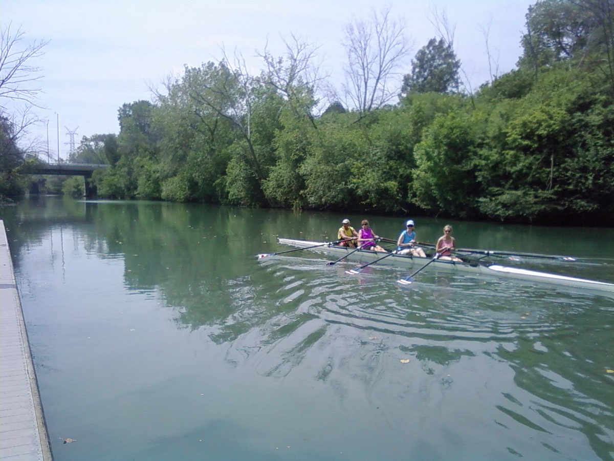 Ron, new lady, Sharon Lento, another new lady passed dock in other quad