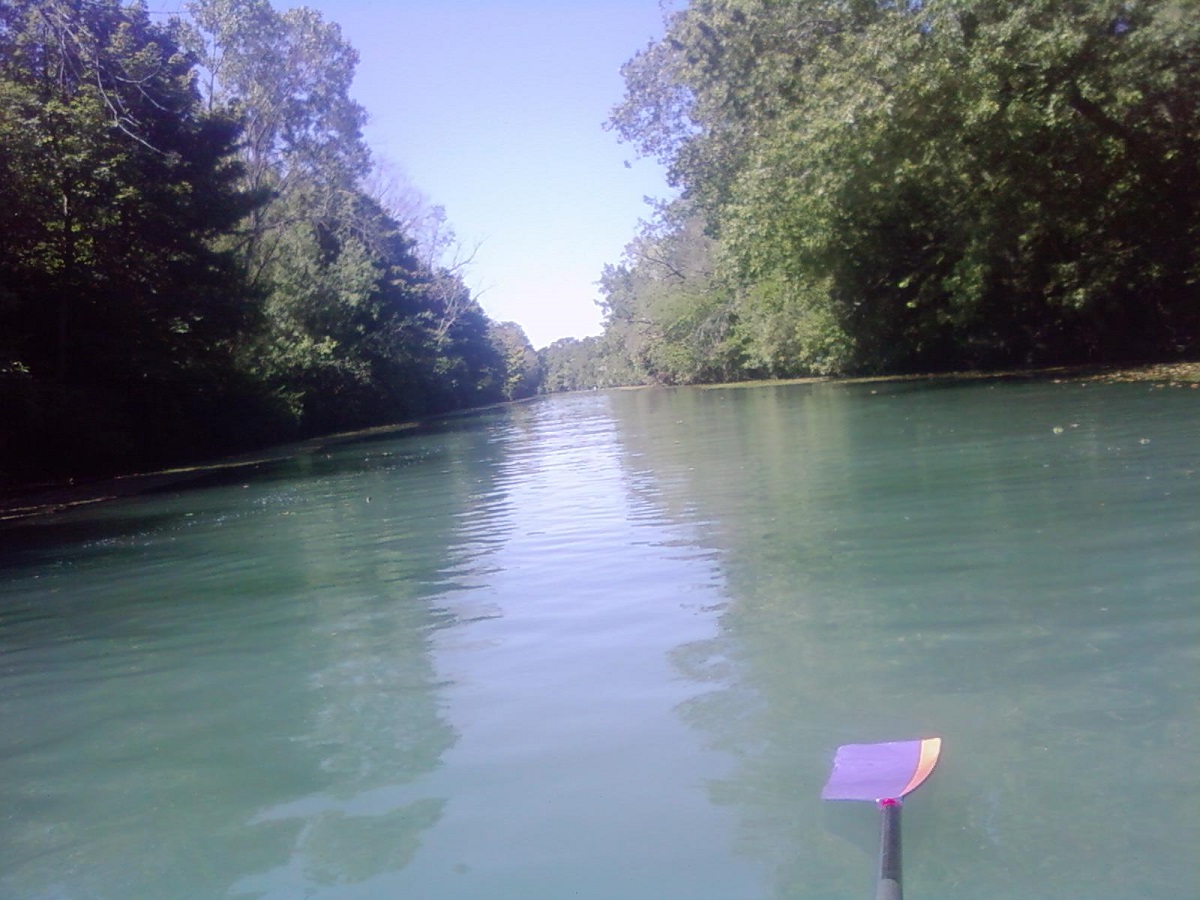 Looking southeast down canal to white speck of ladies quad we passed as Ron turned us around