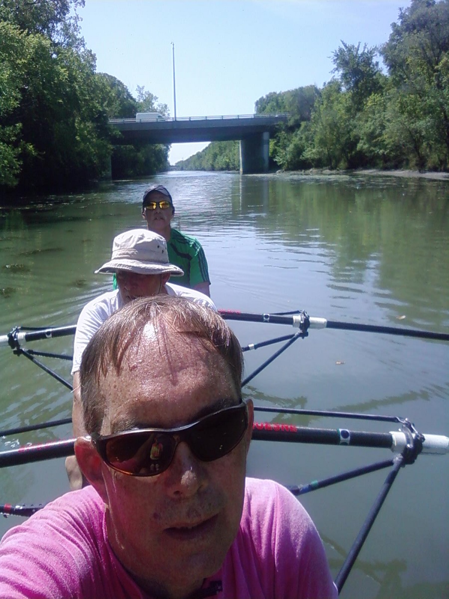 Andy, Warren, and Brian rowing back just north of Dempster bridge