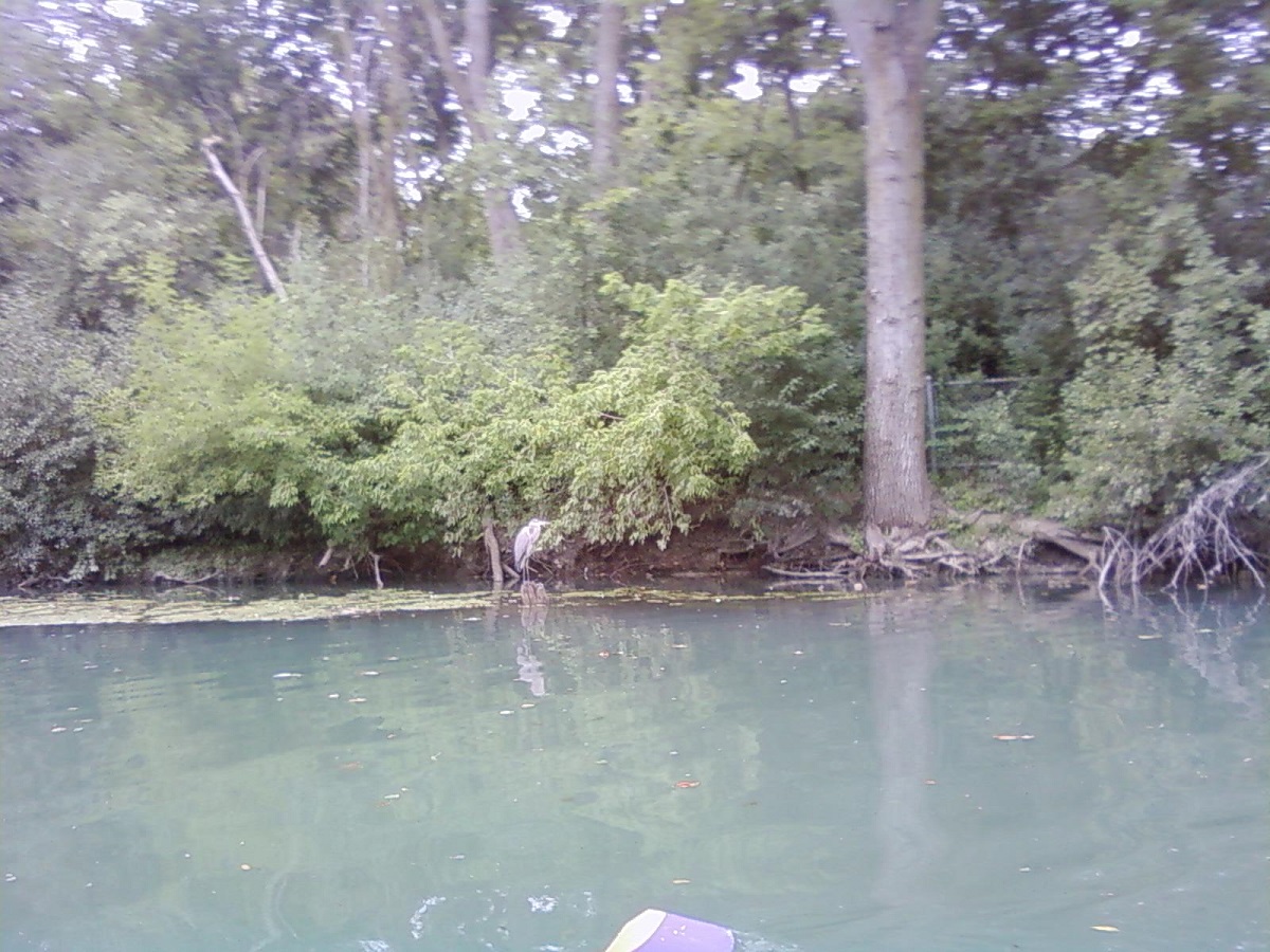 A heron perched on log -- Erin specially stopped the rowing to let me take this picture