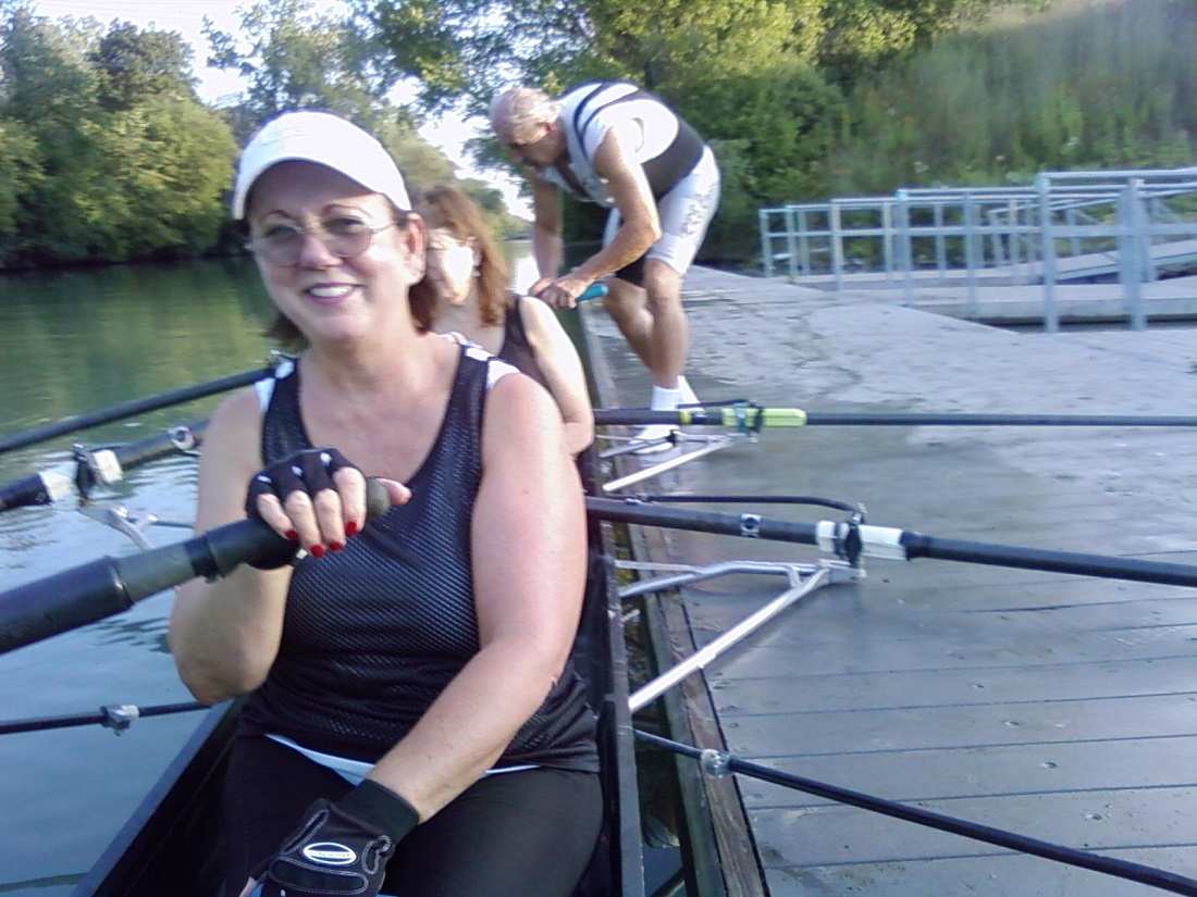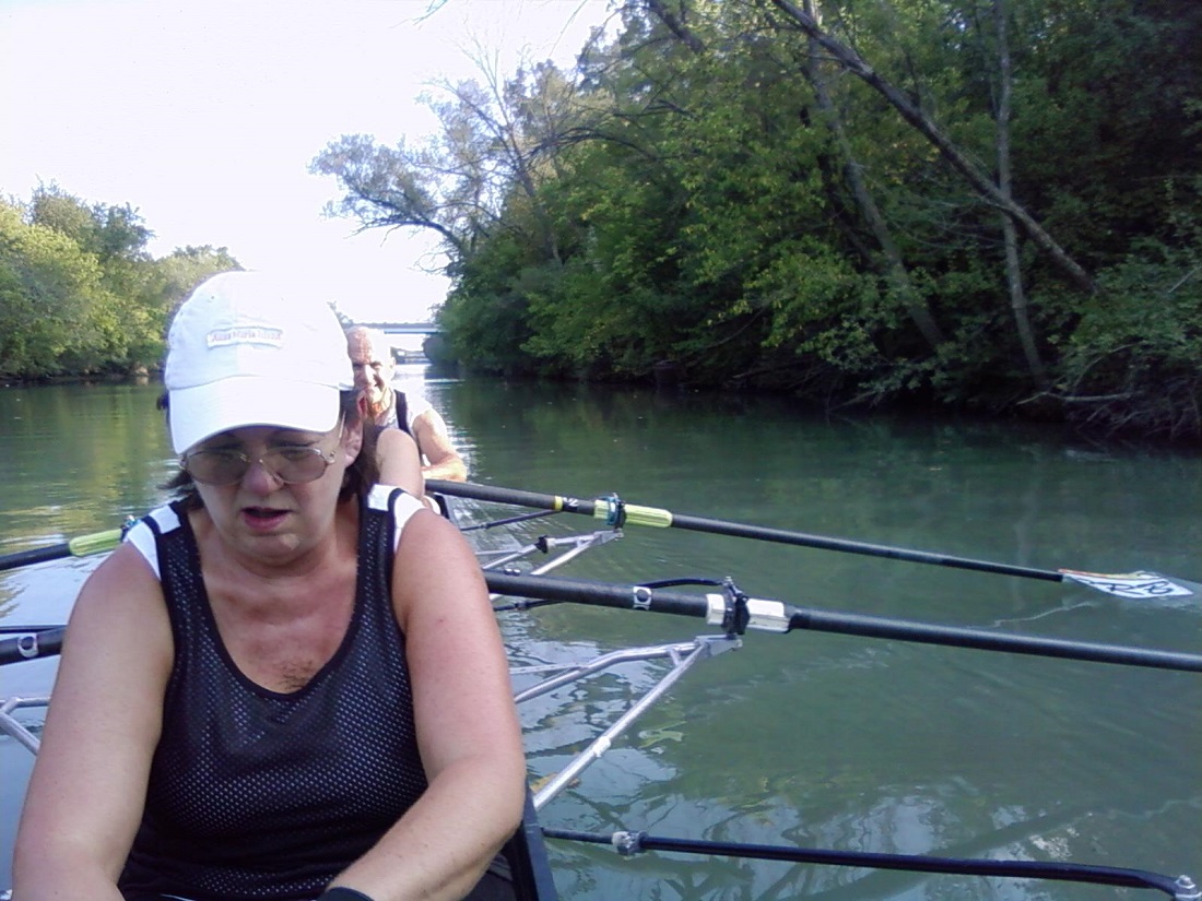 Betsy, Gayee, and Ron rowing our quad sculling boat