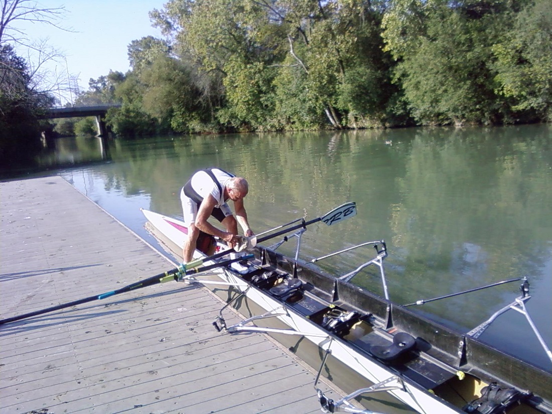 Ron removing oars from our quad sculling boat