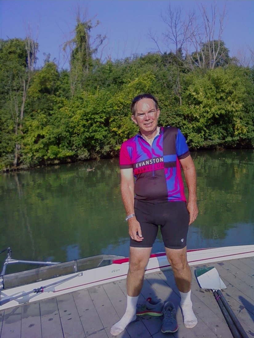 Andy with our quad sculling boat at dock