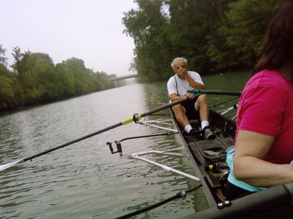 Finally, after students left, Ron and Gail in quad scull with Andy who took photo