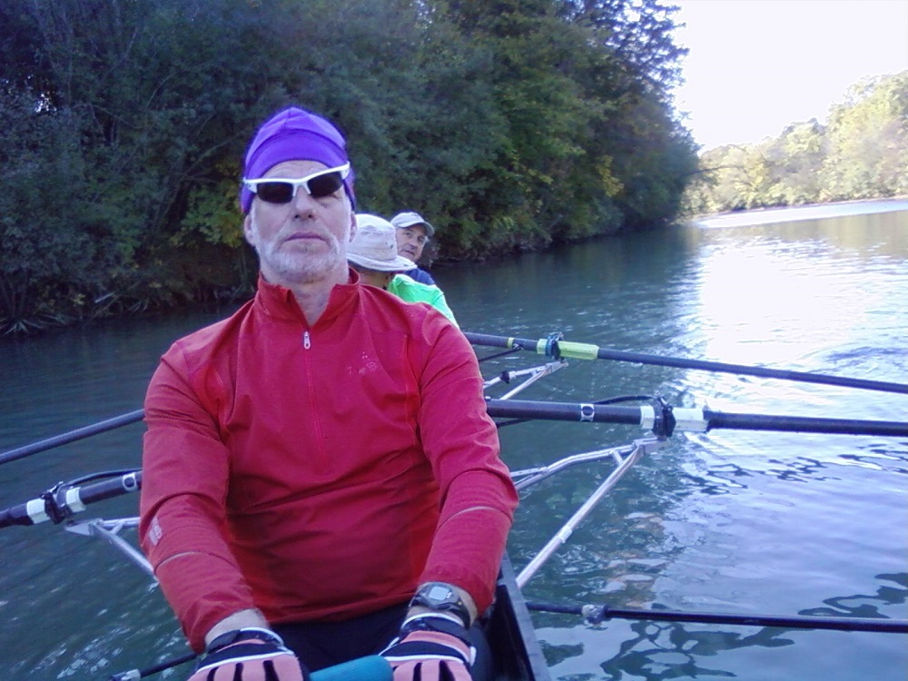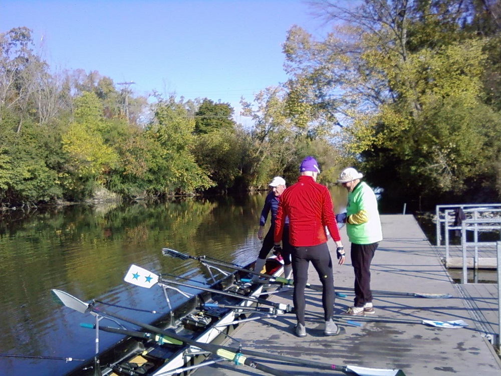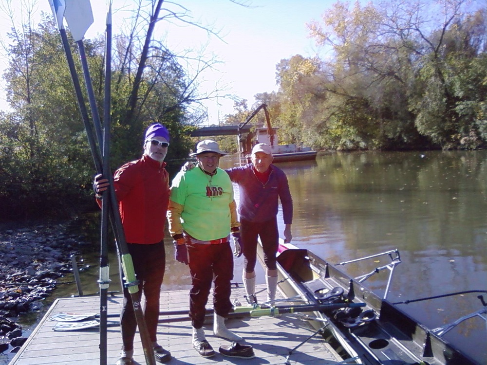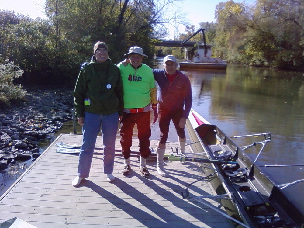 Ron, Brian and Warren with our quad scull shell on dock at Oakton