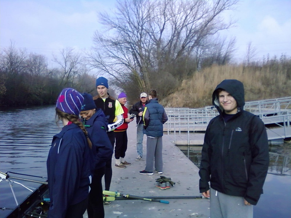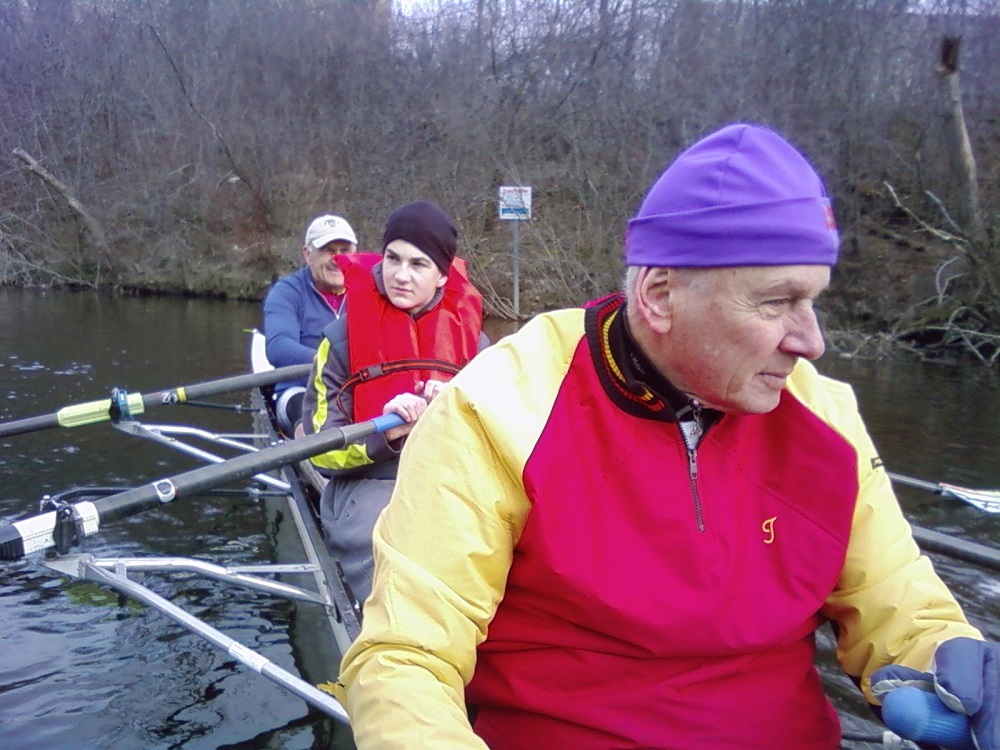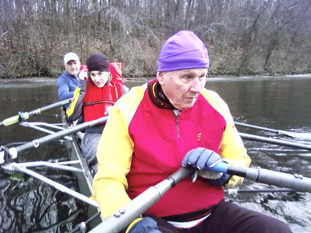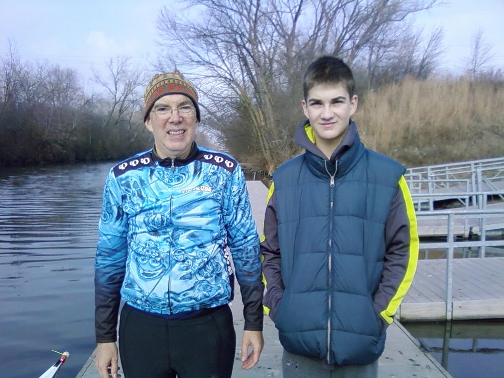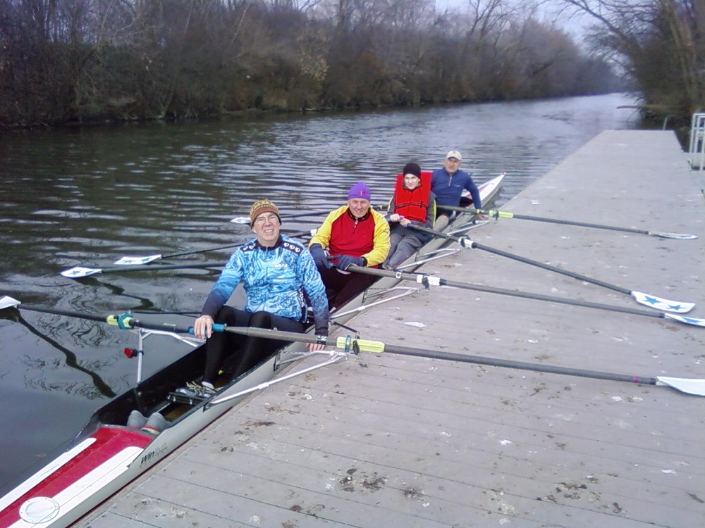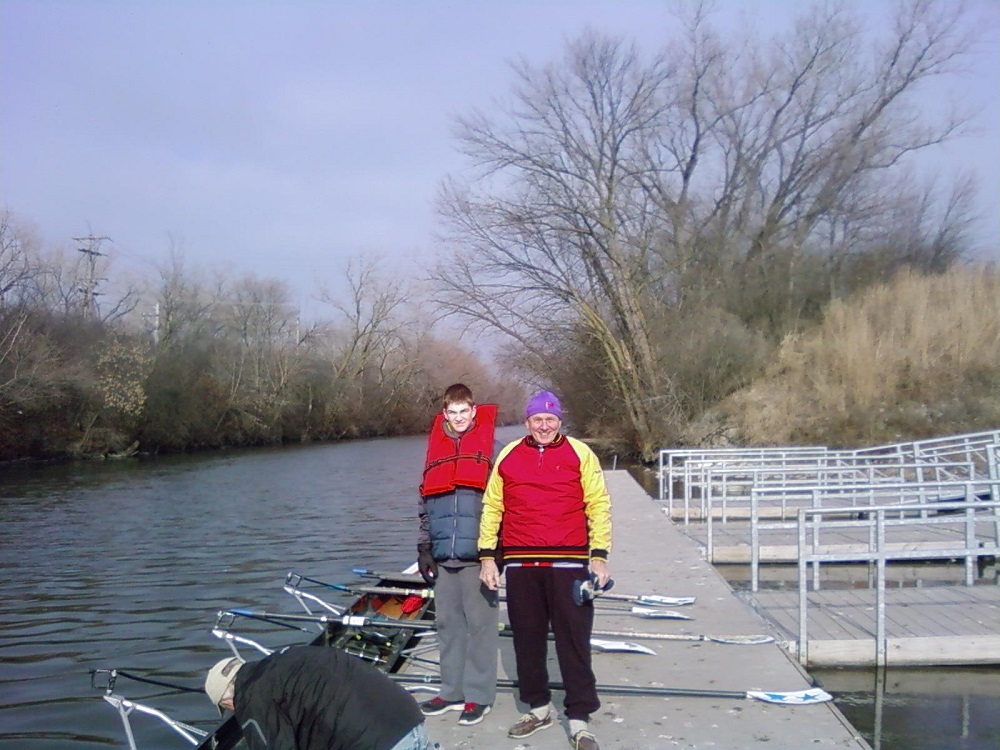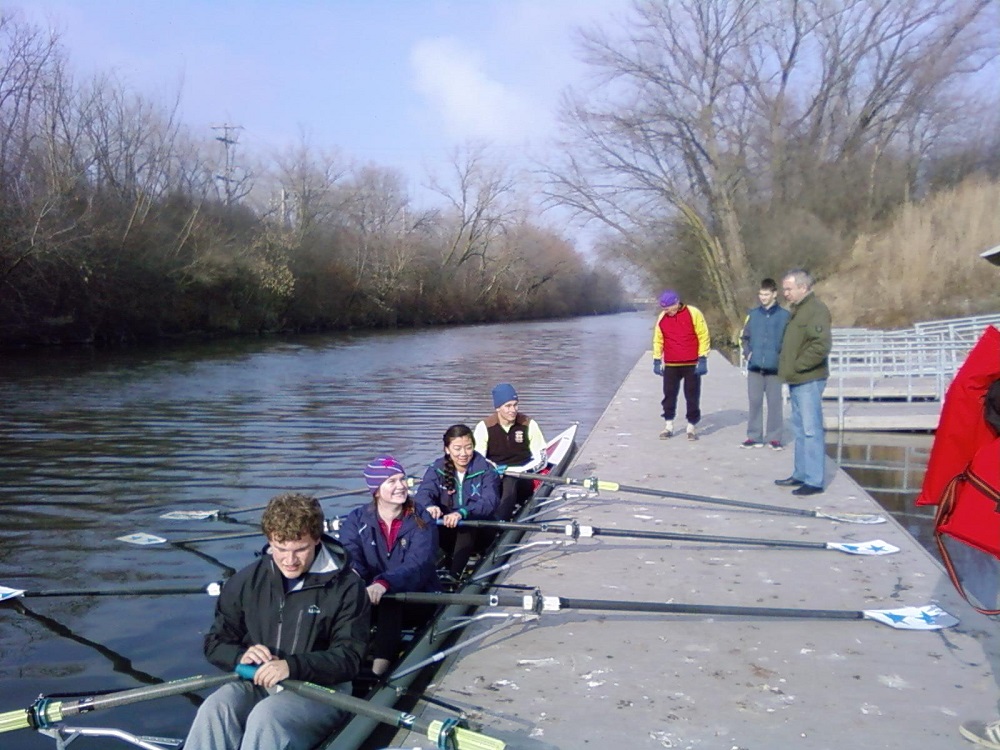 New young team in quad ready to take off with Warren, Peter, and his Dad at the Oakton dock