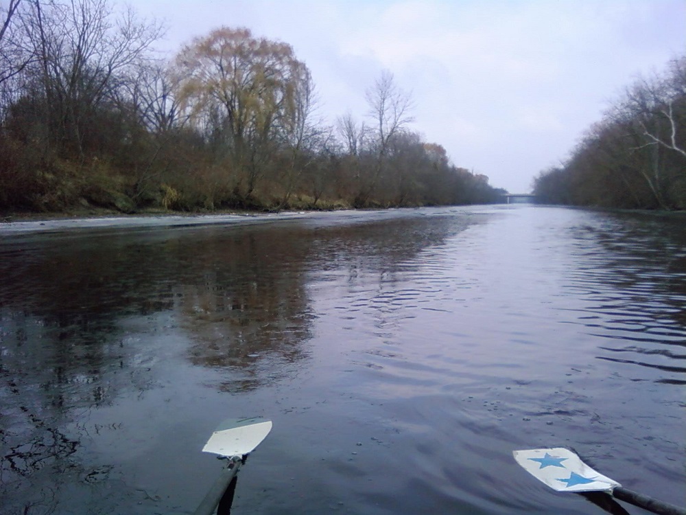 Looking south on the canal from as far south as we rowed -- past the Touhy bridge