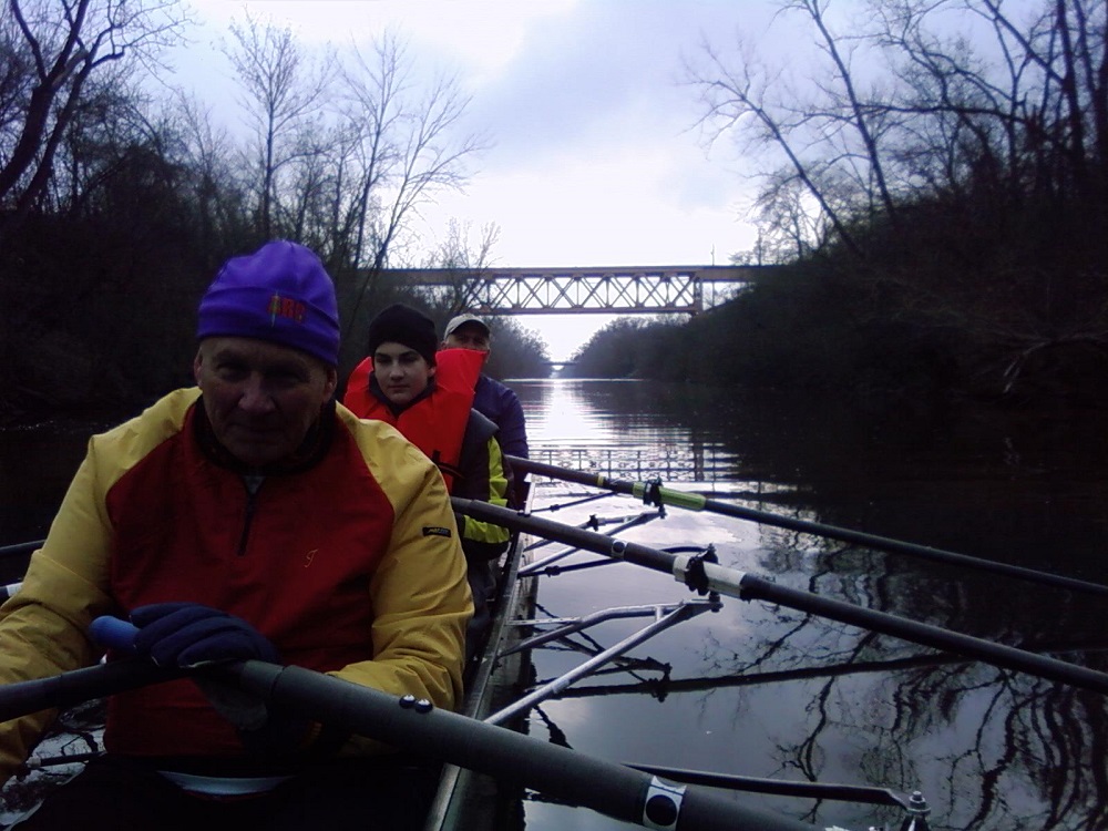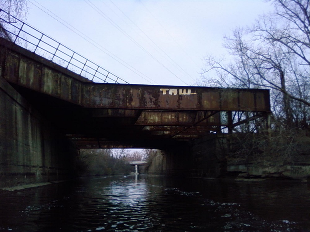 Warren Peter, and Ron looking south along the canal under Skokie Swift bridge to Howard bridge then Touhy bridge