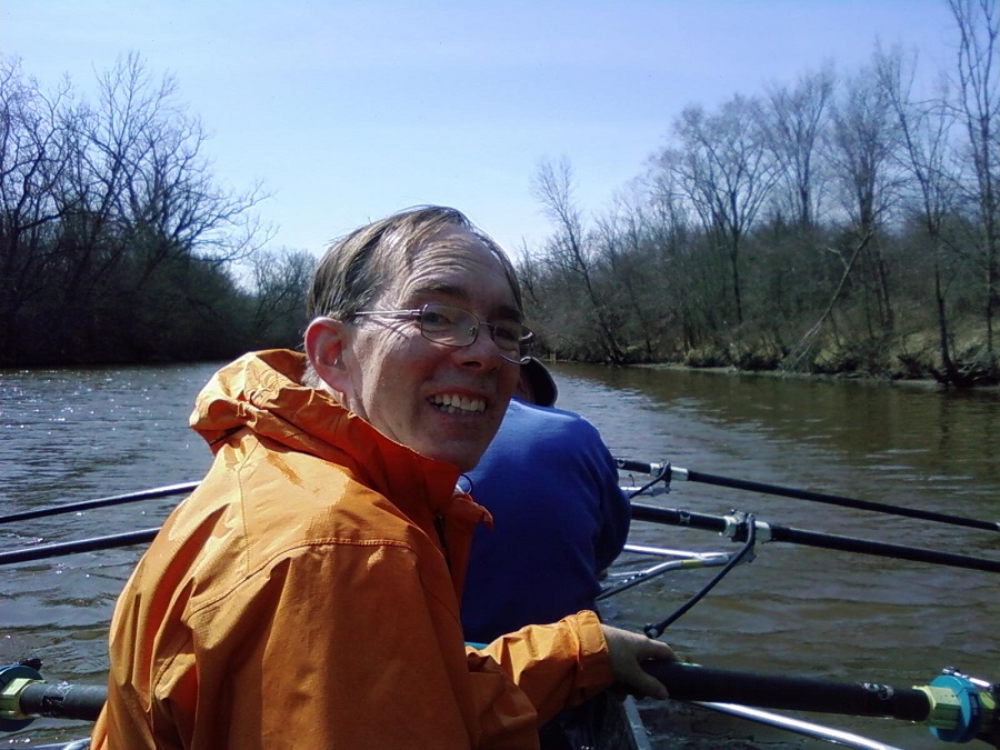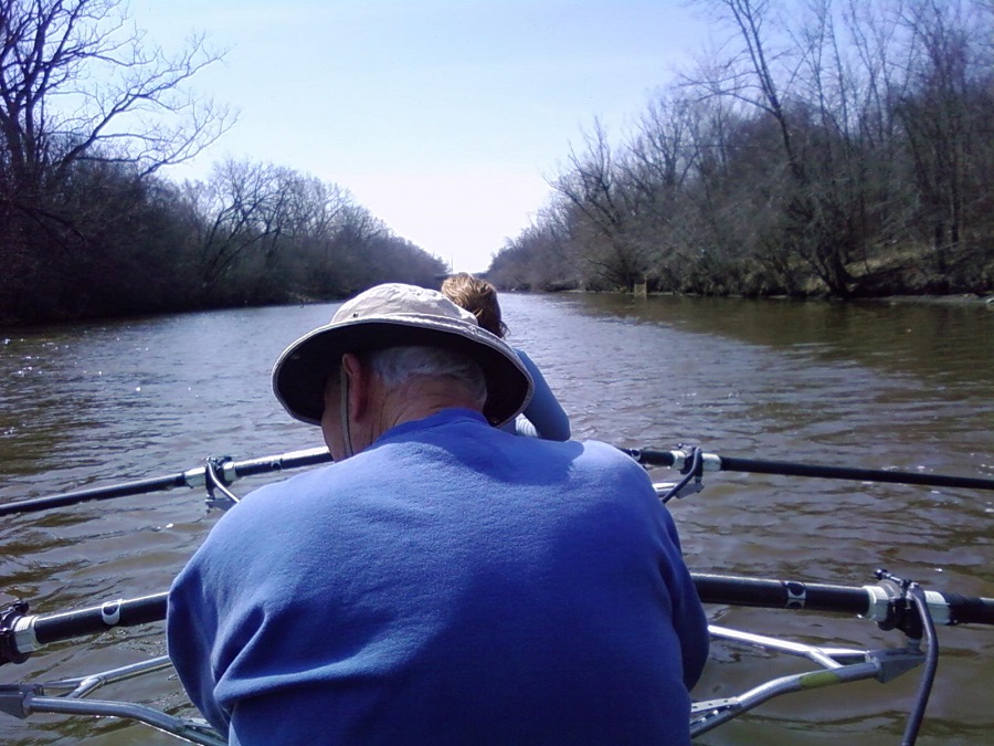 After a long (butt soaring) row back against the strong southwest wind, Ron and Donna at the Oakton Dock