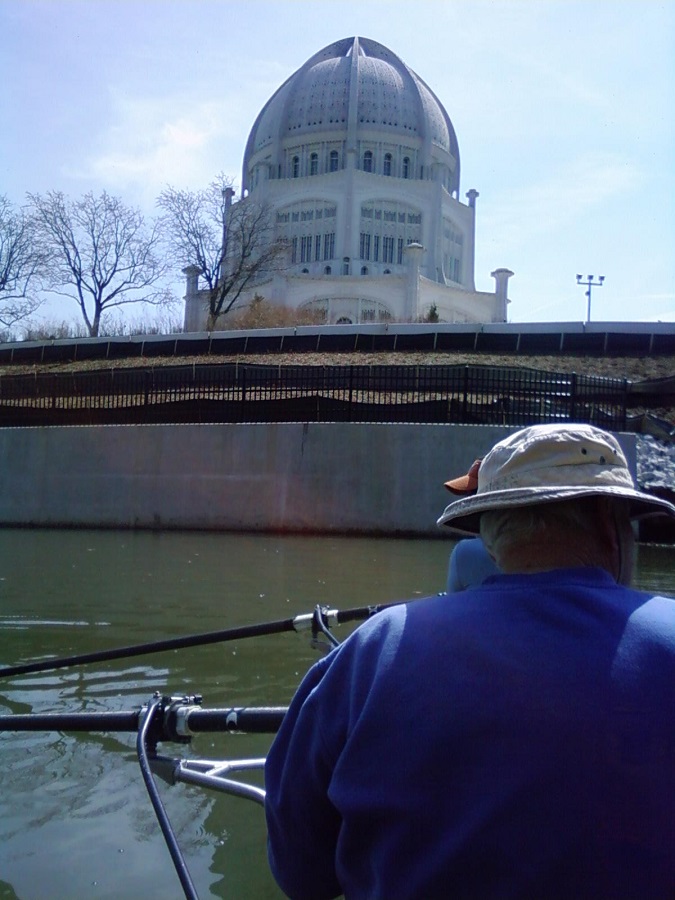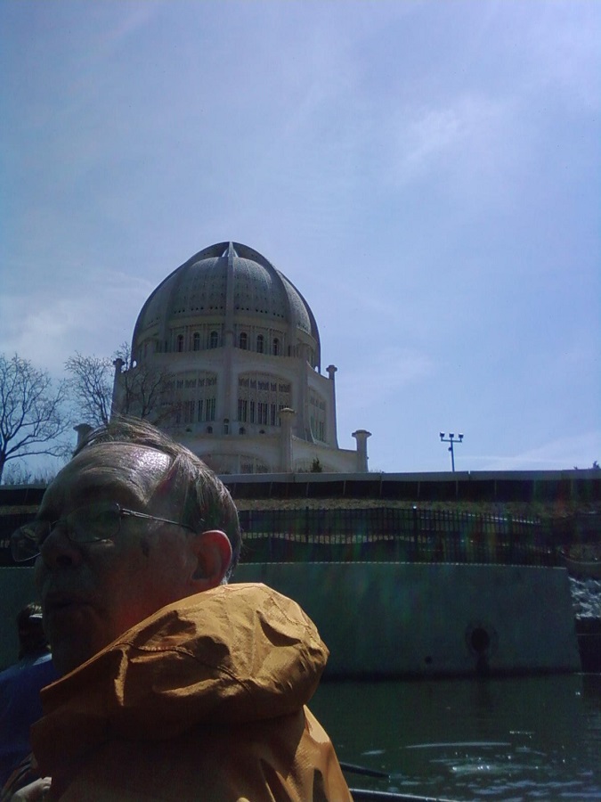 The Baha'i Temple with Warren and the tip of Donna's hat