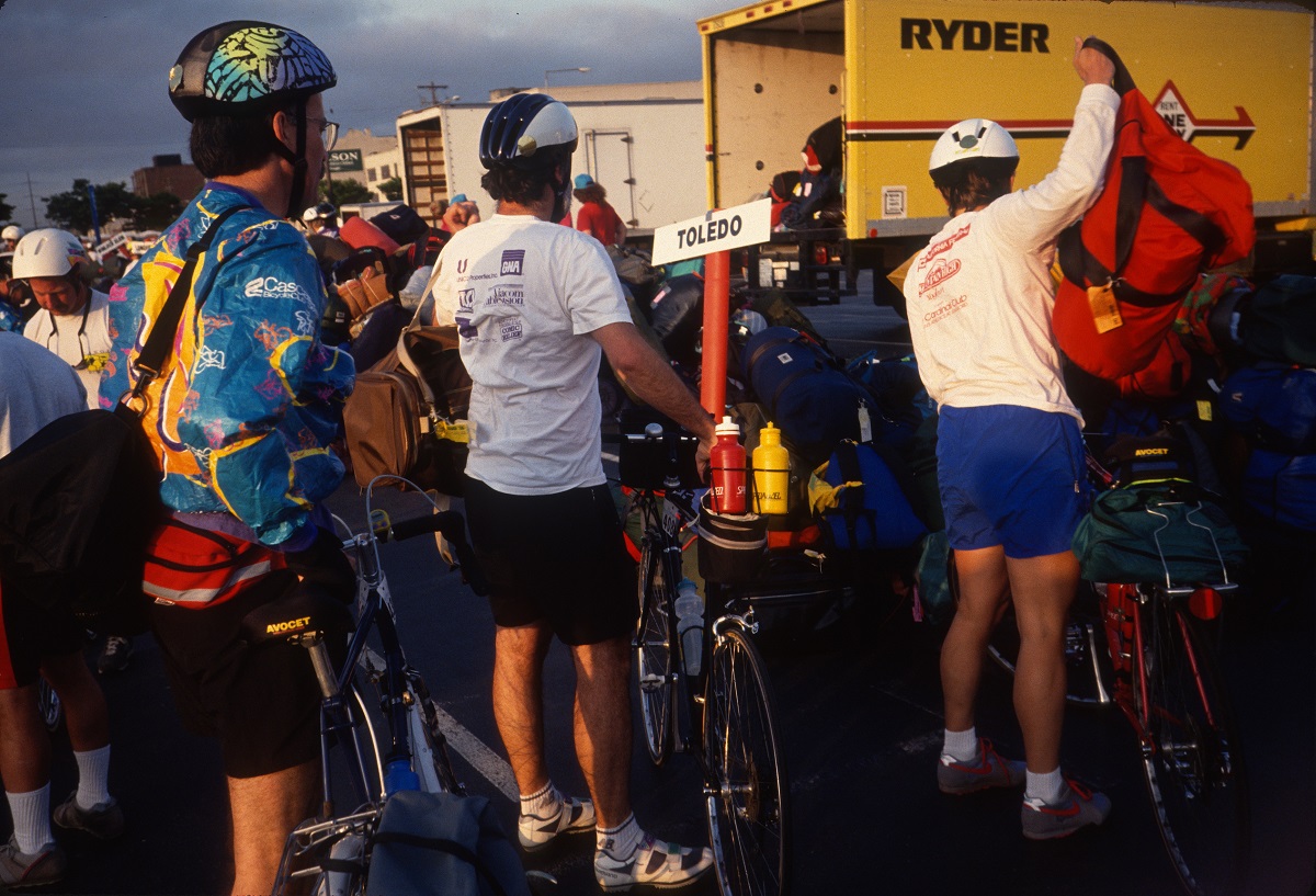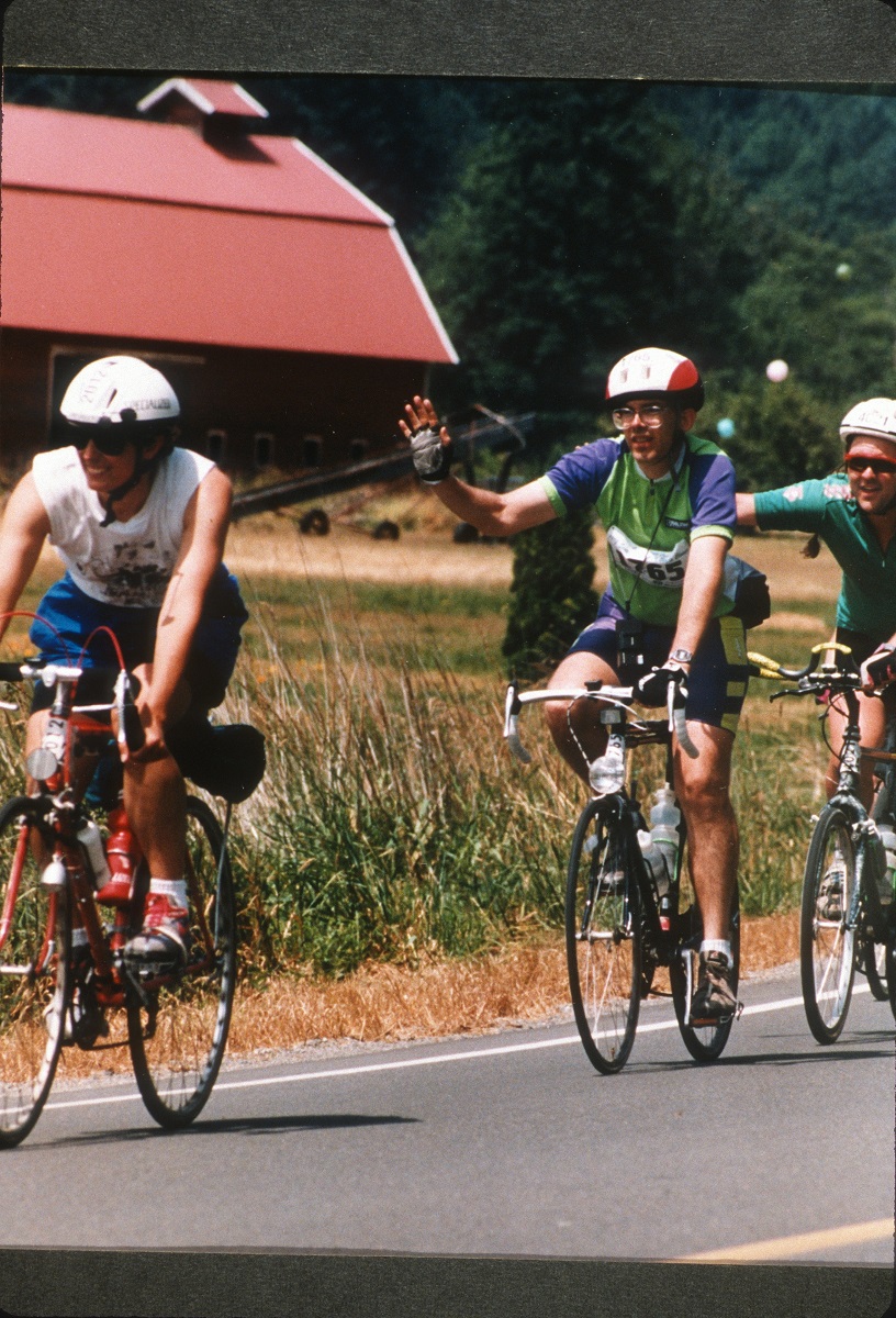 On the road the first day with Dorothy, Andy and another riding in Andy's wind wake