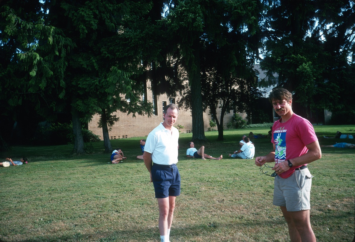 Another rider and Tom with other riders in background