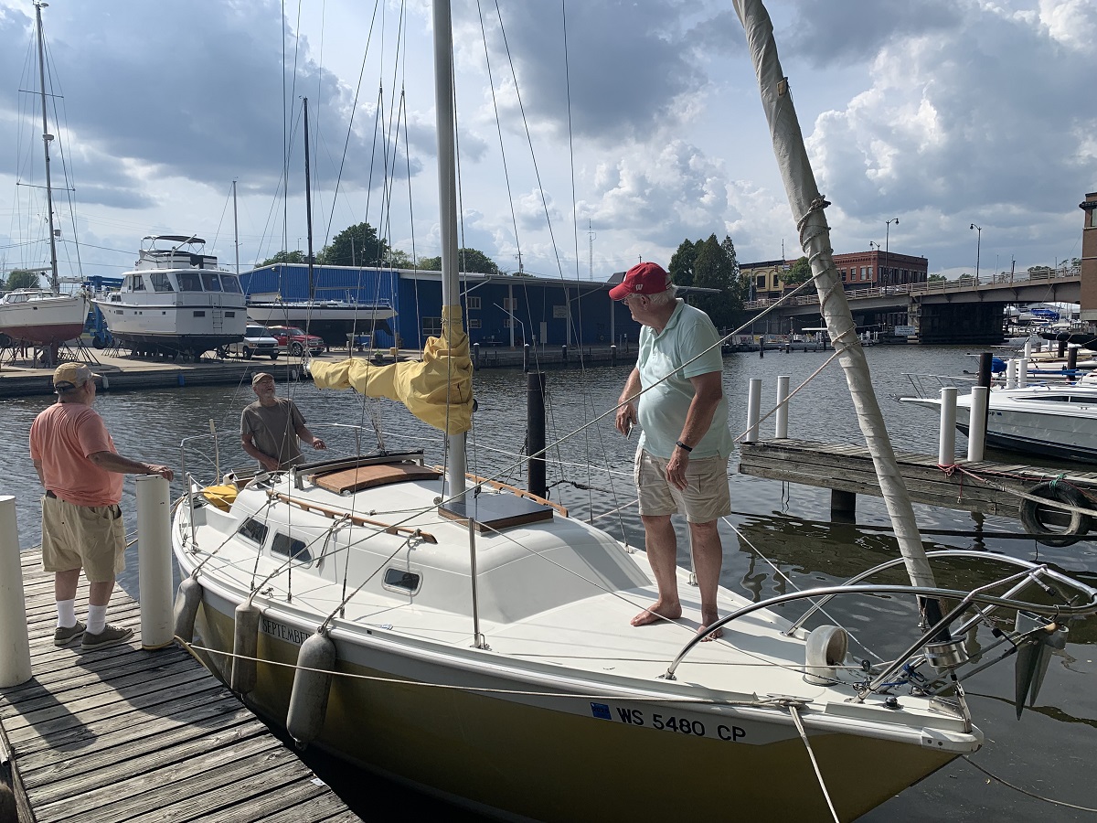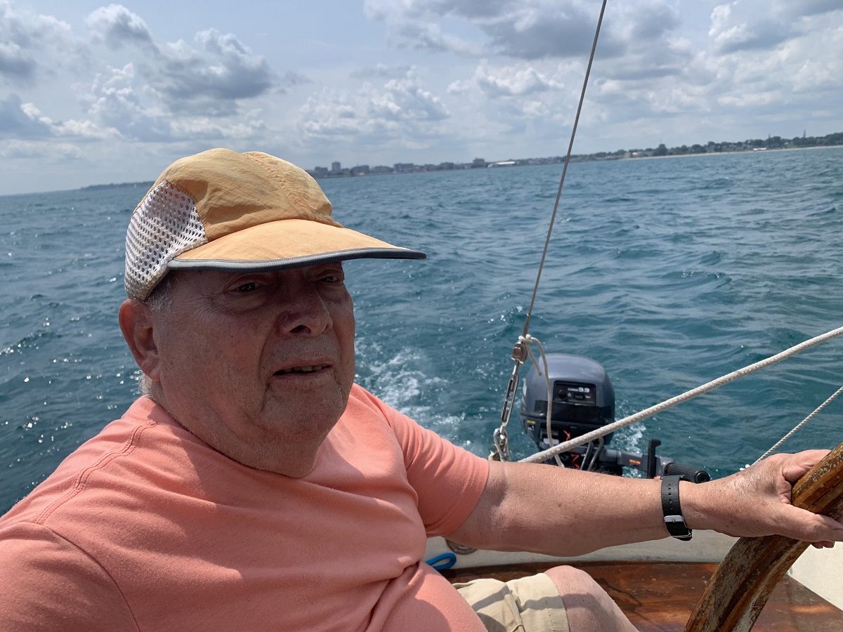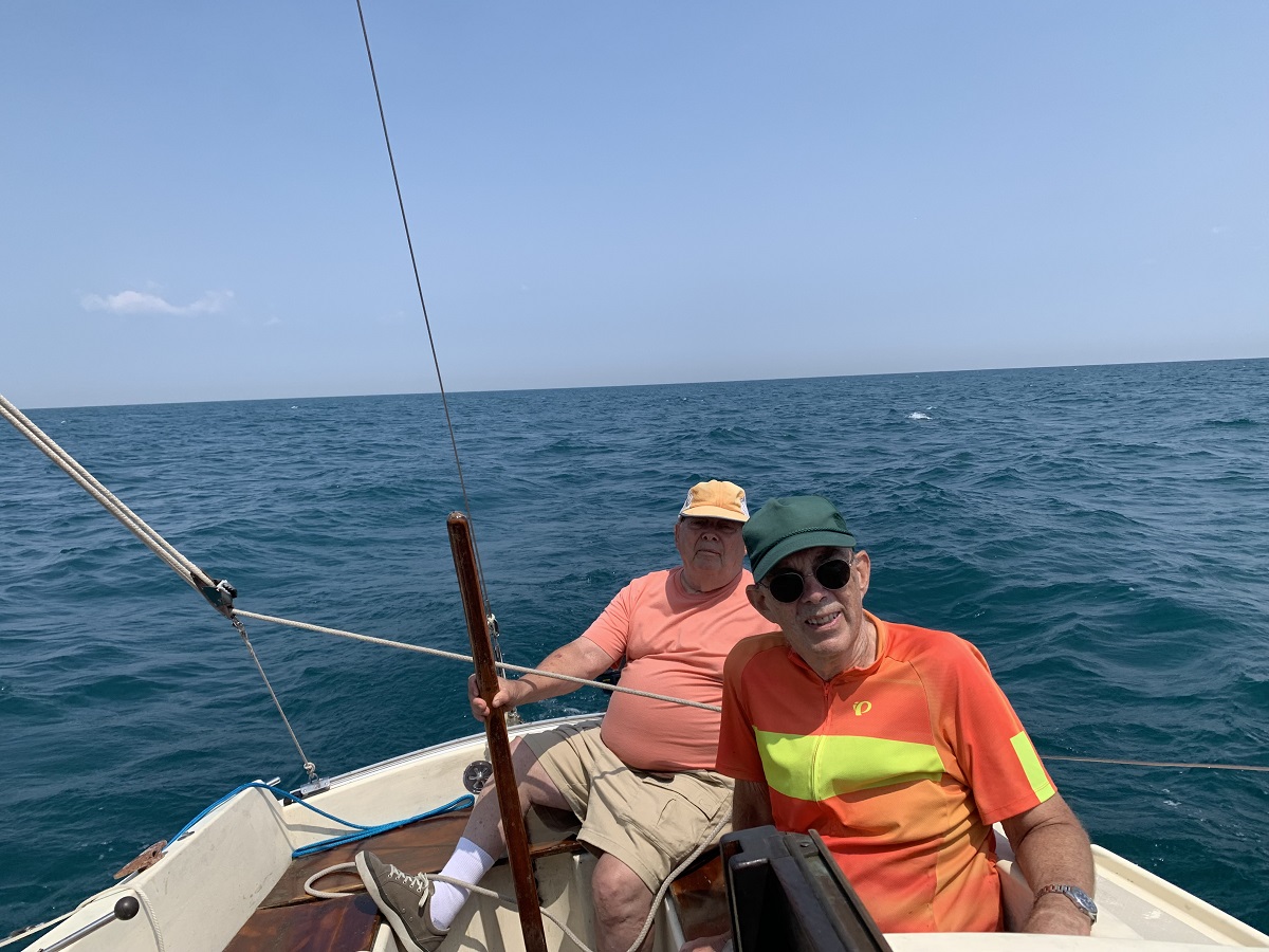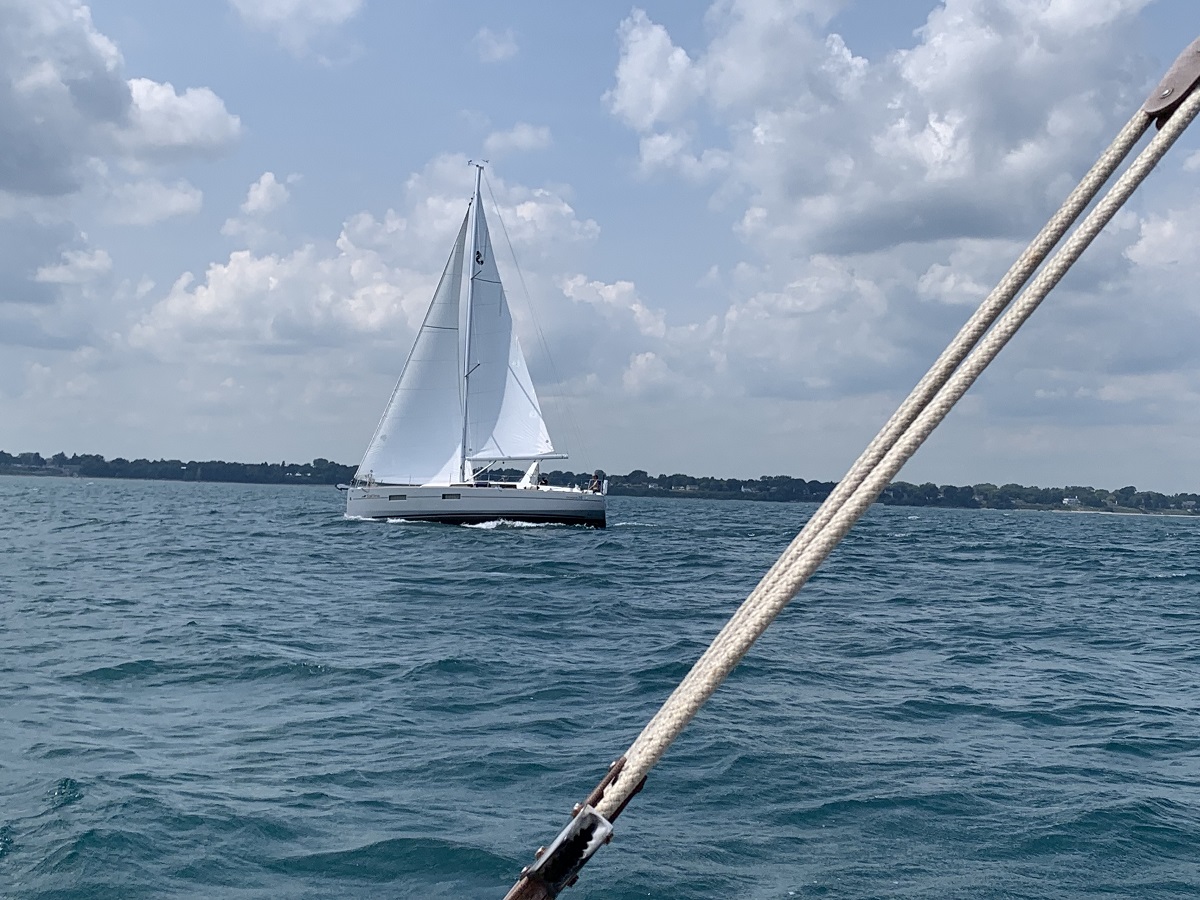 Another larger sailboat with both sails set
