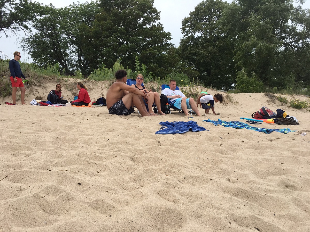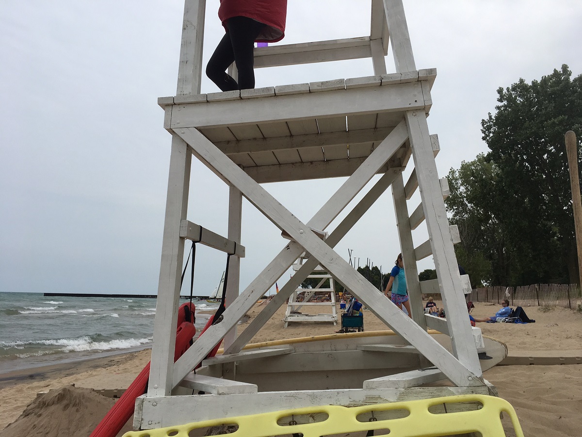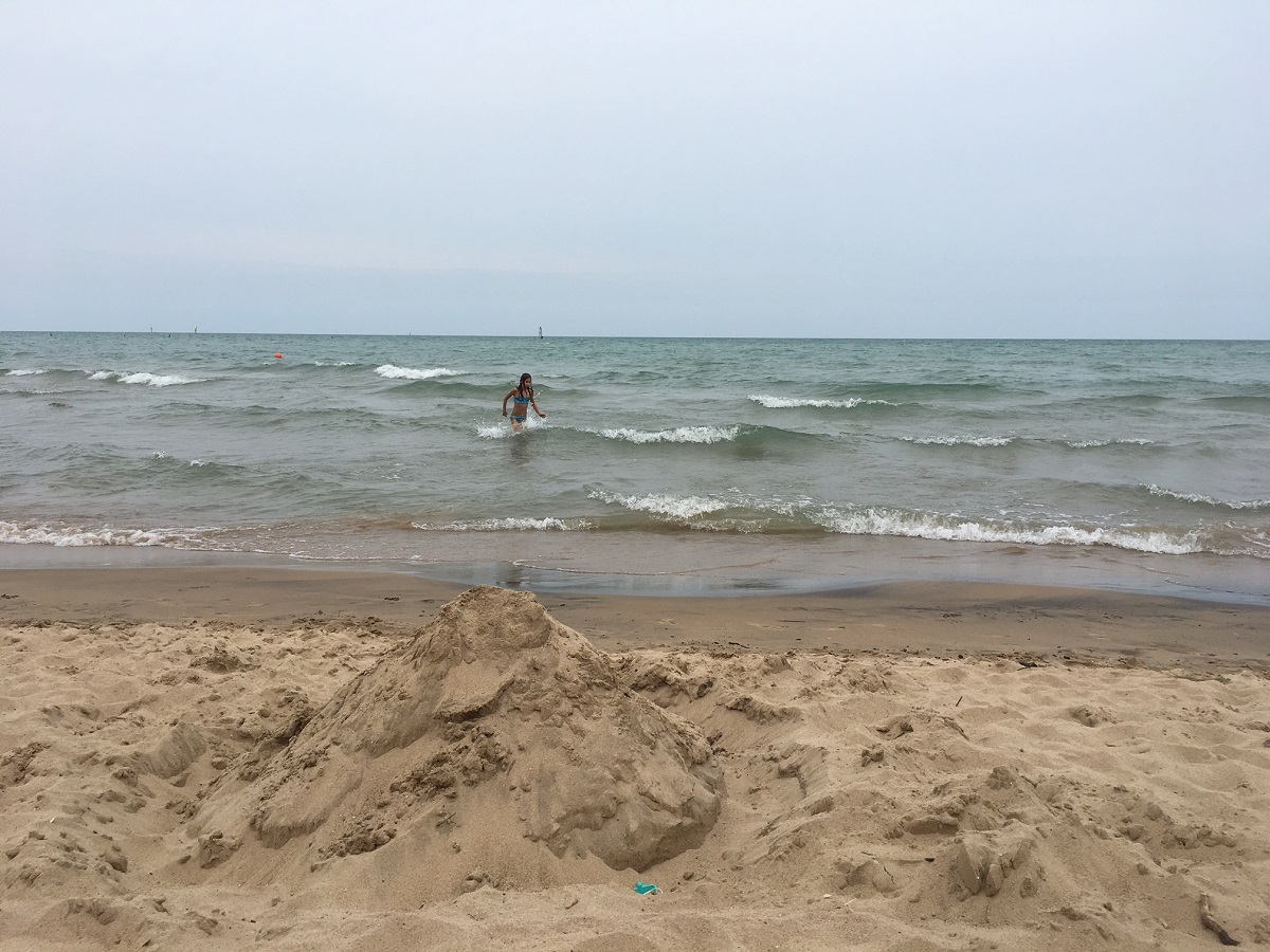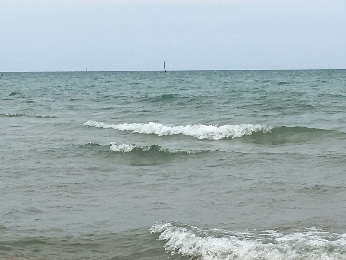 A sailboat and a wind surfer with the whitecaps -- which made the water quite warm blowing all the surface water over here from Michigan