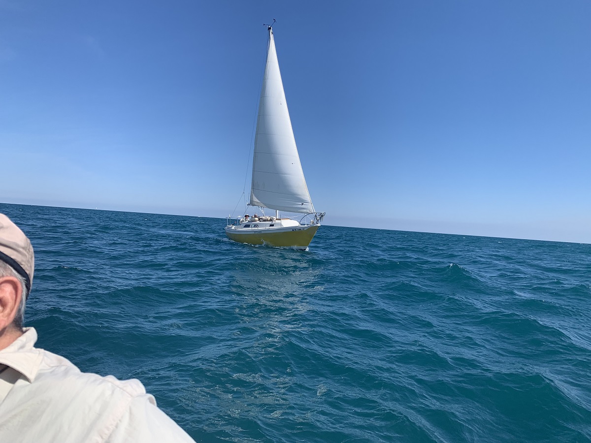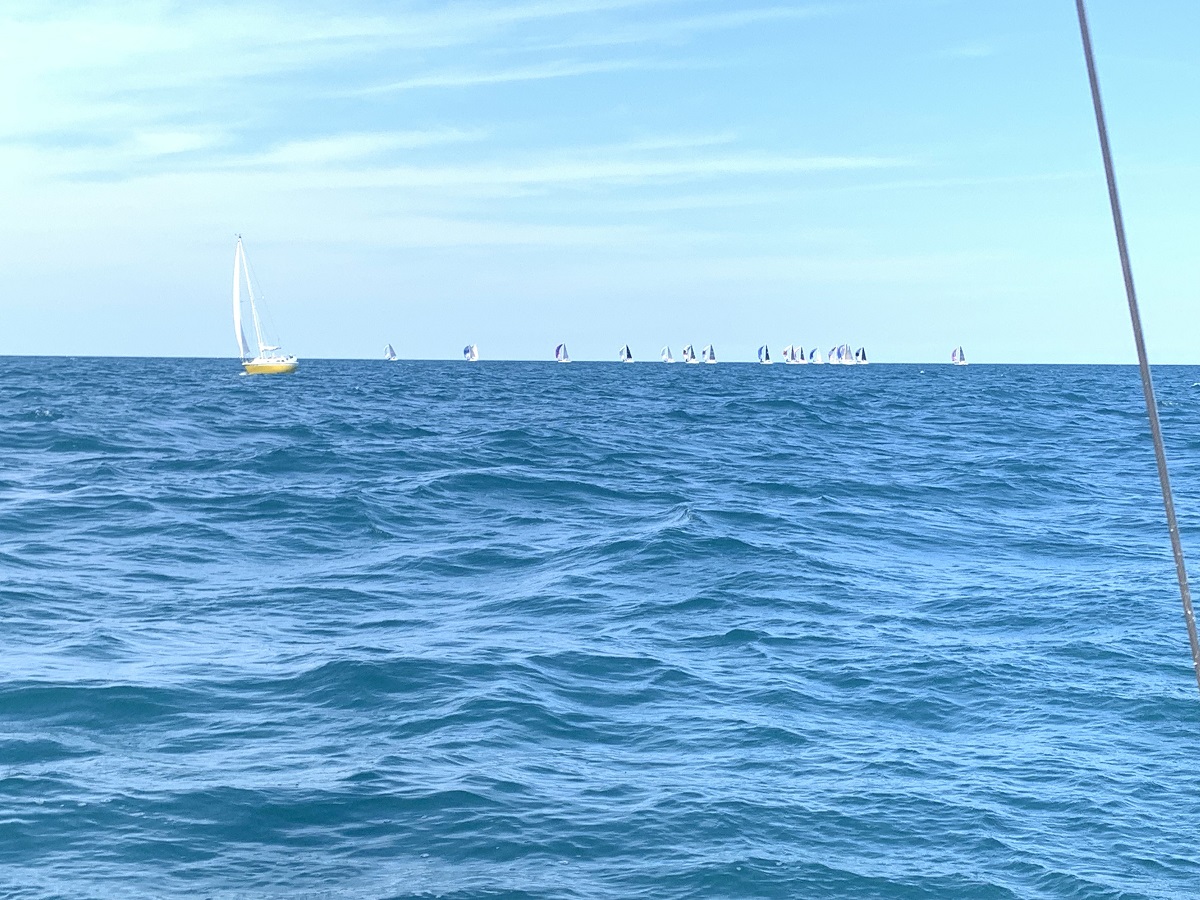 Our neighbor, Dan, in yellow sailboat, with sailboat race