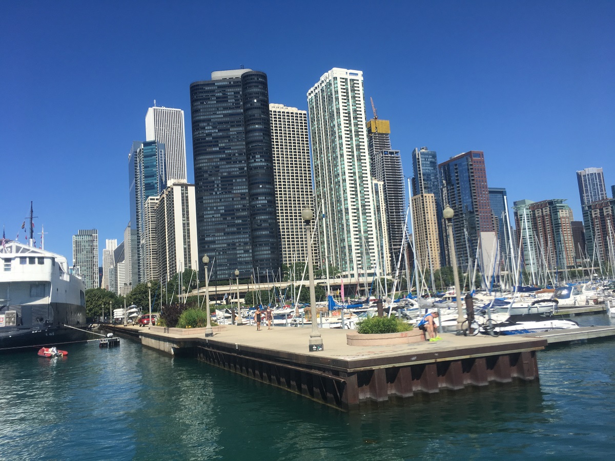 Amoco Building, condos, and sailboats in harbor
