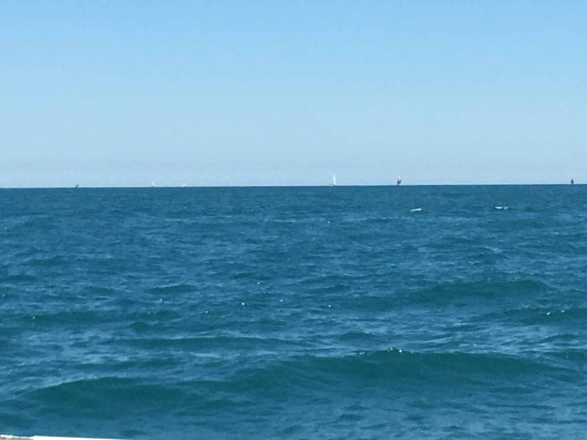 Many sailboats on horizon as Andy, Bill and two others sail later