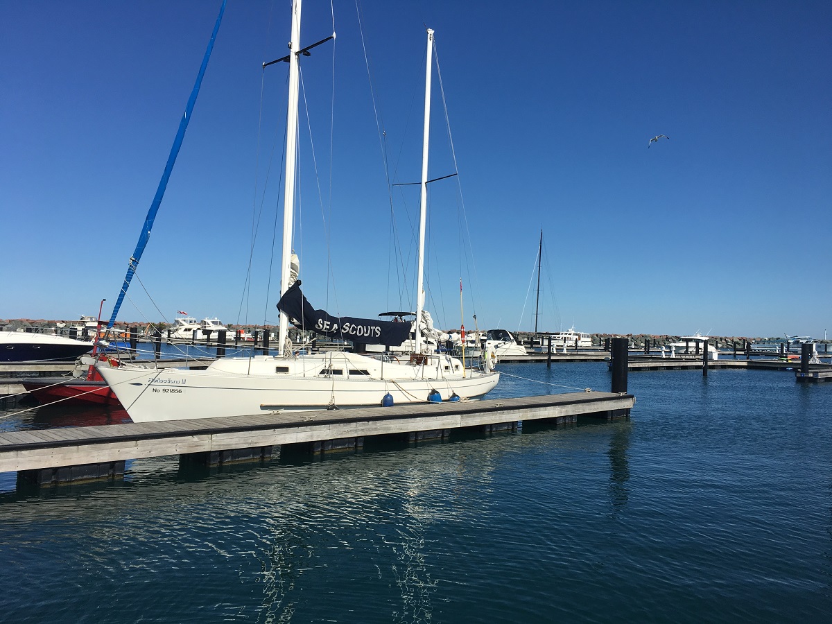 Reflections III tied up at her slip in 31st Street Harbor after our sail