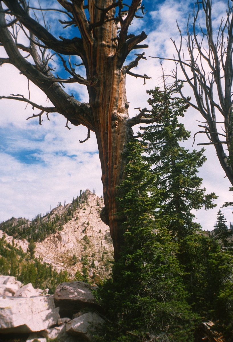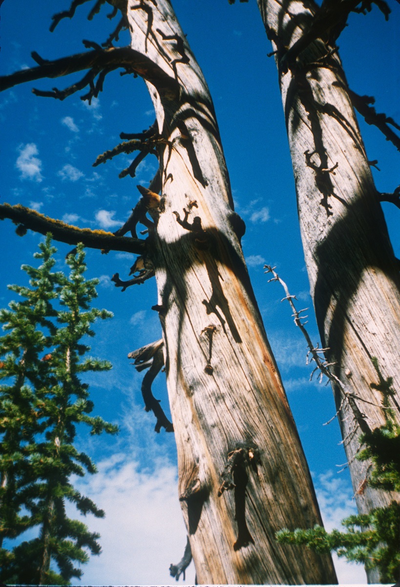 Tall dead trees with a peak