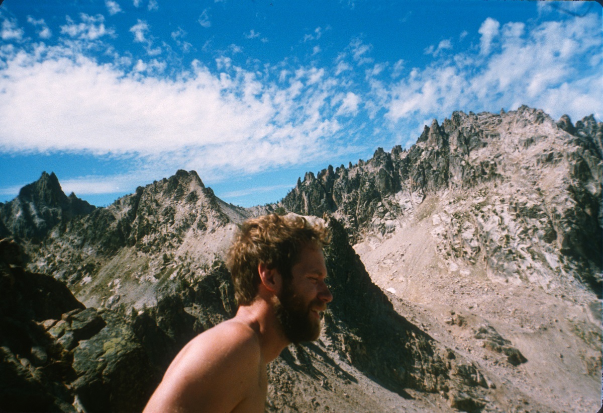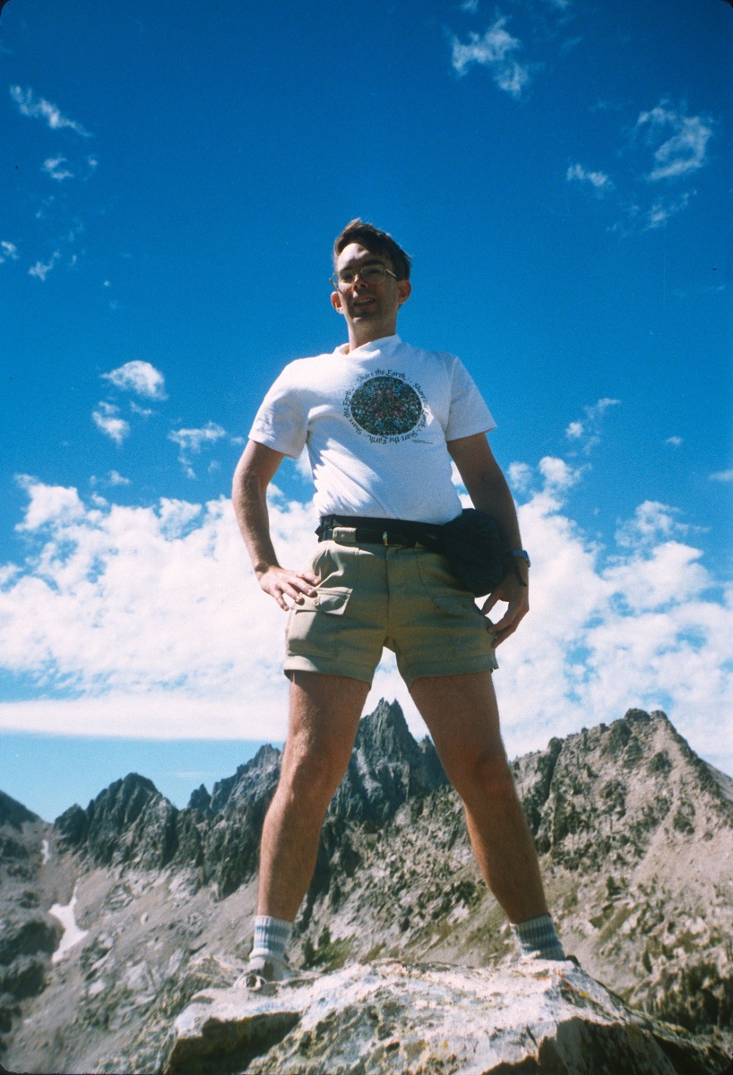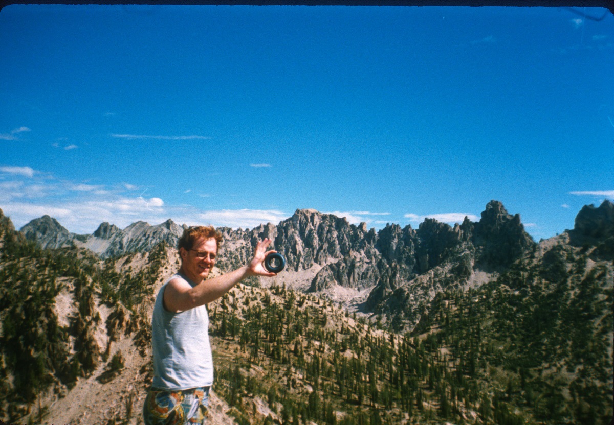 Andy with jagged Sawtooth Mountains