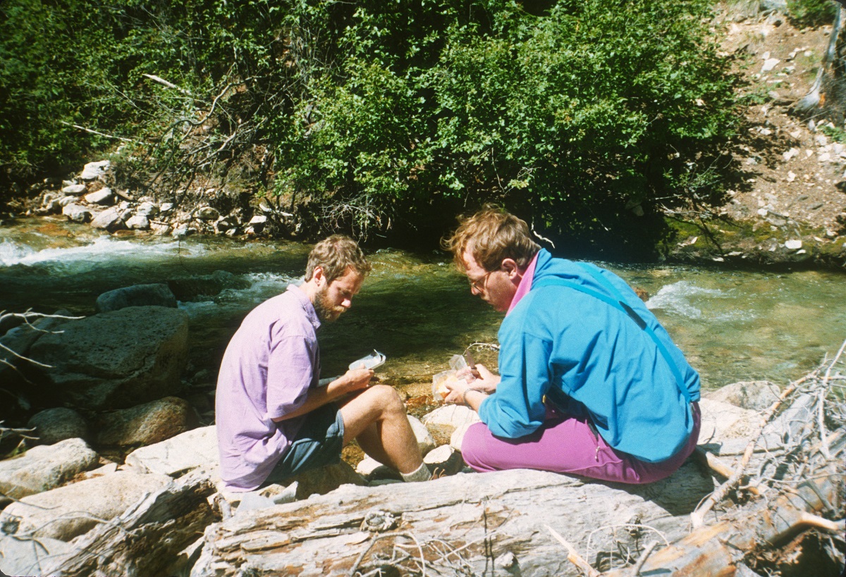 Charlie and Kalus by a mountain stream