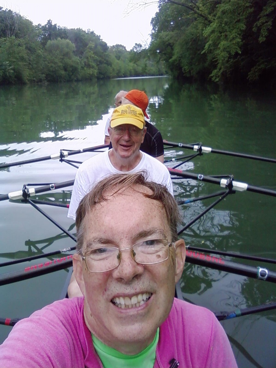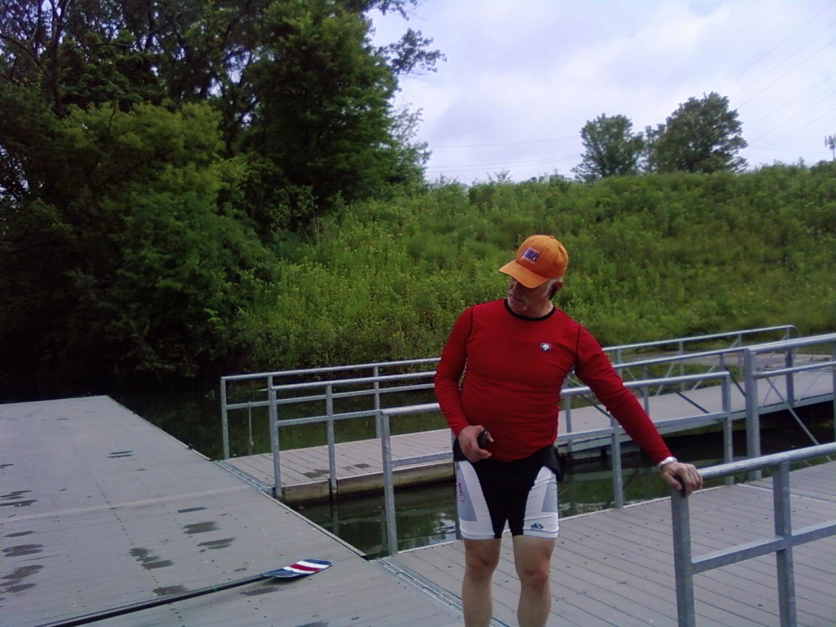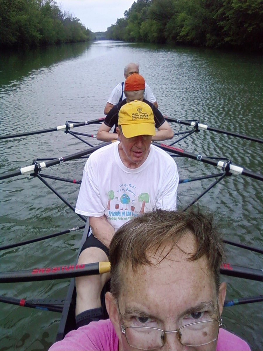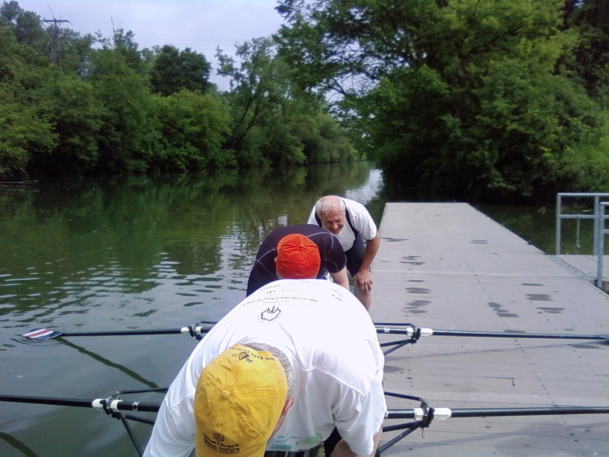 Andy and Bill, top of Jessie's orange hat, Ron's right shoulder as we approach dock