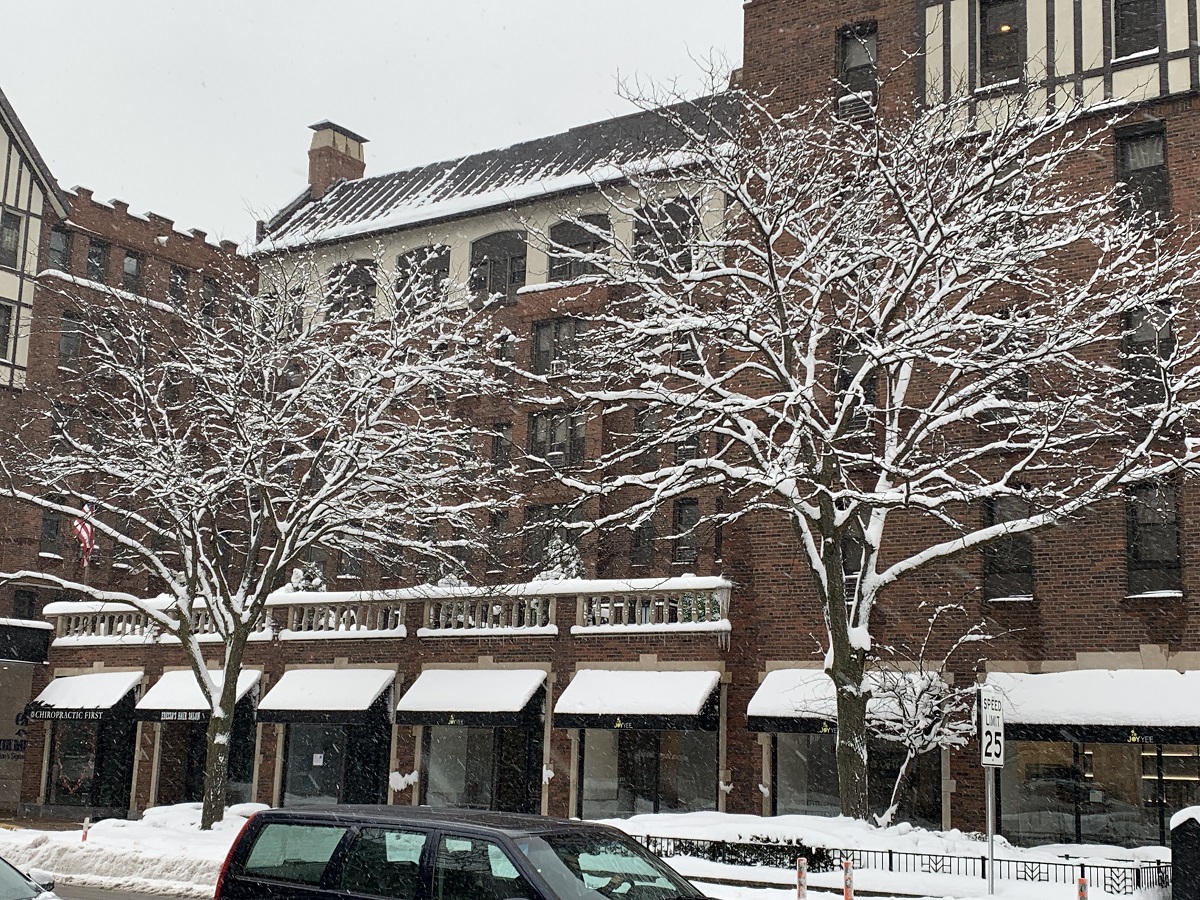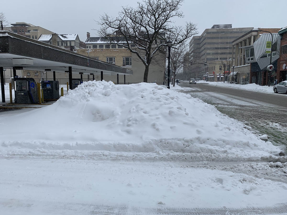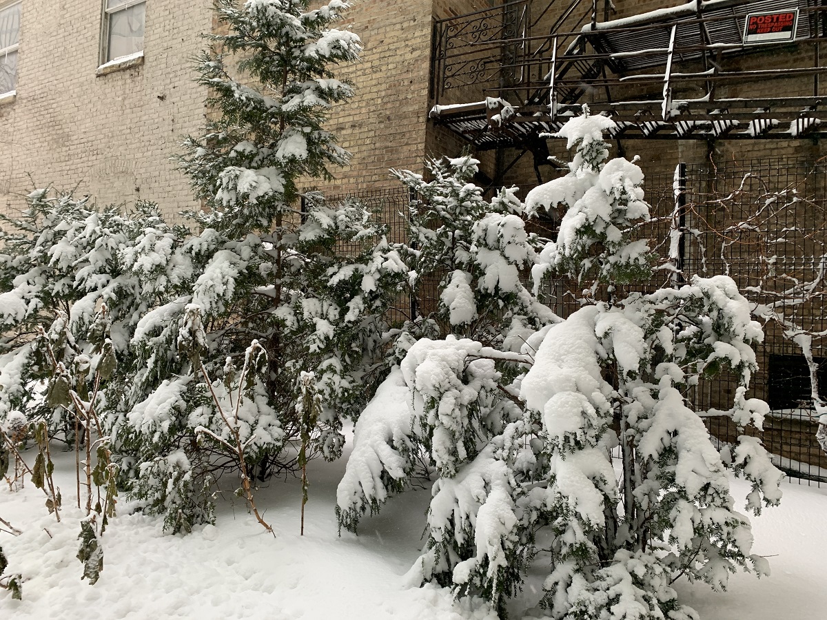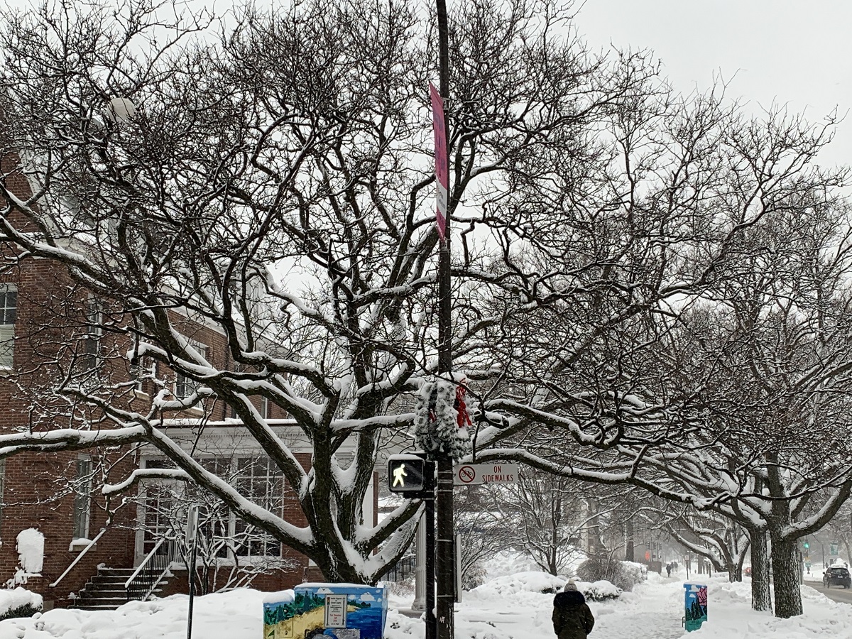 Snow trimmed trees on Chicago Ave. north of Church St.
