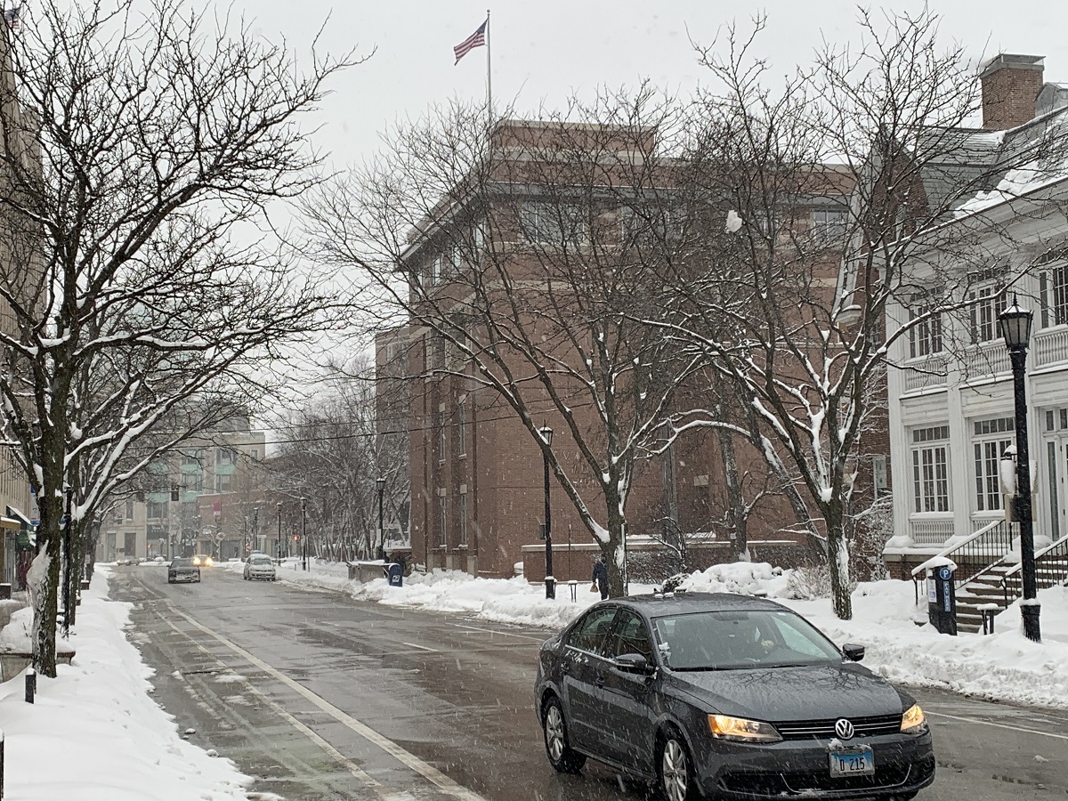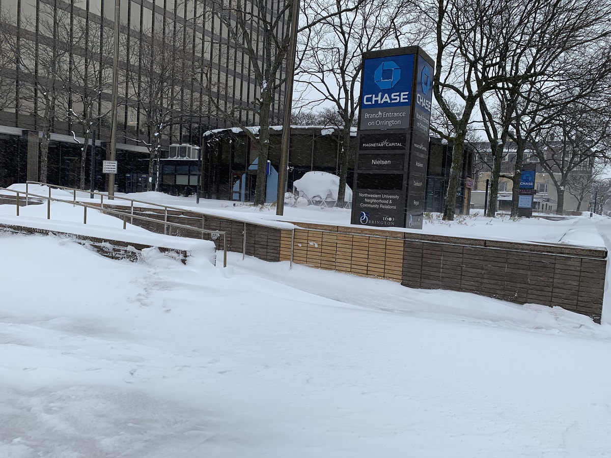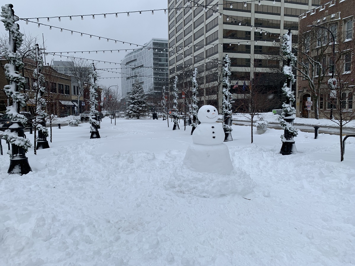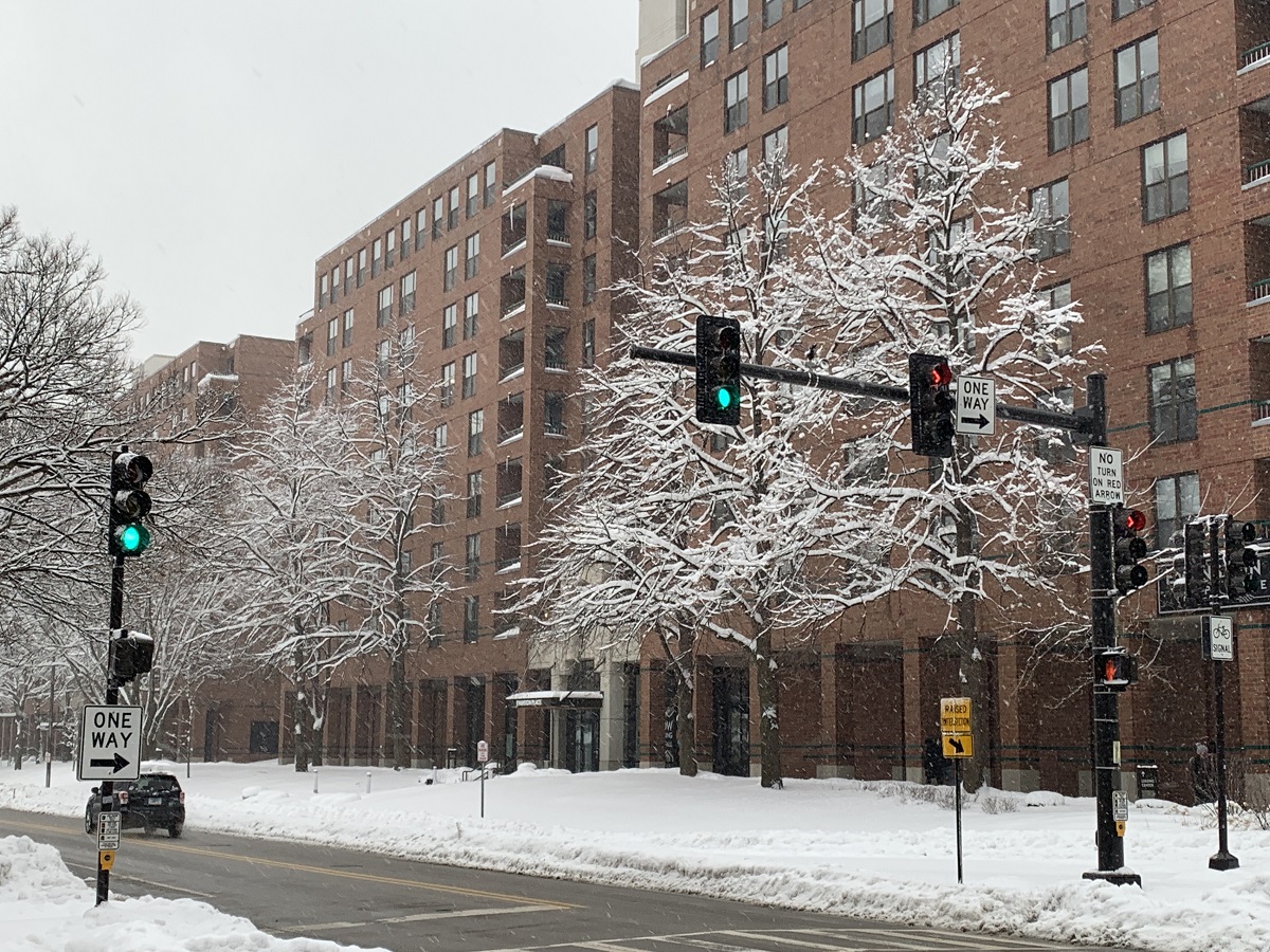 Snow trimmed trees on Chicago Ave. north of Church St.