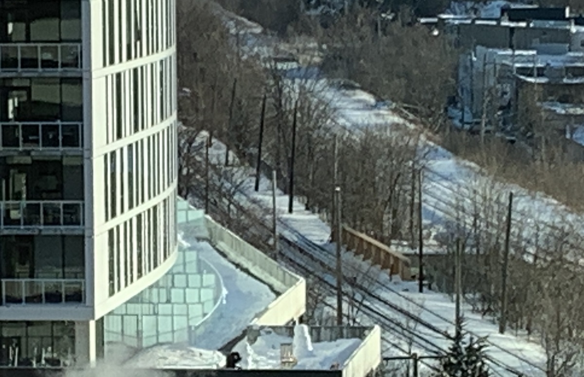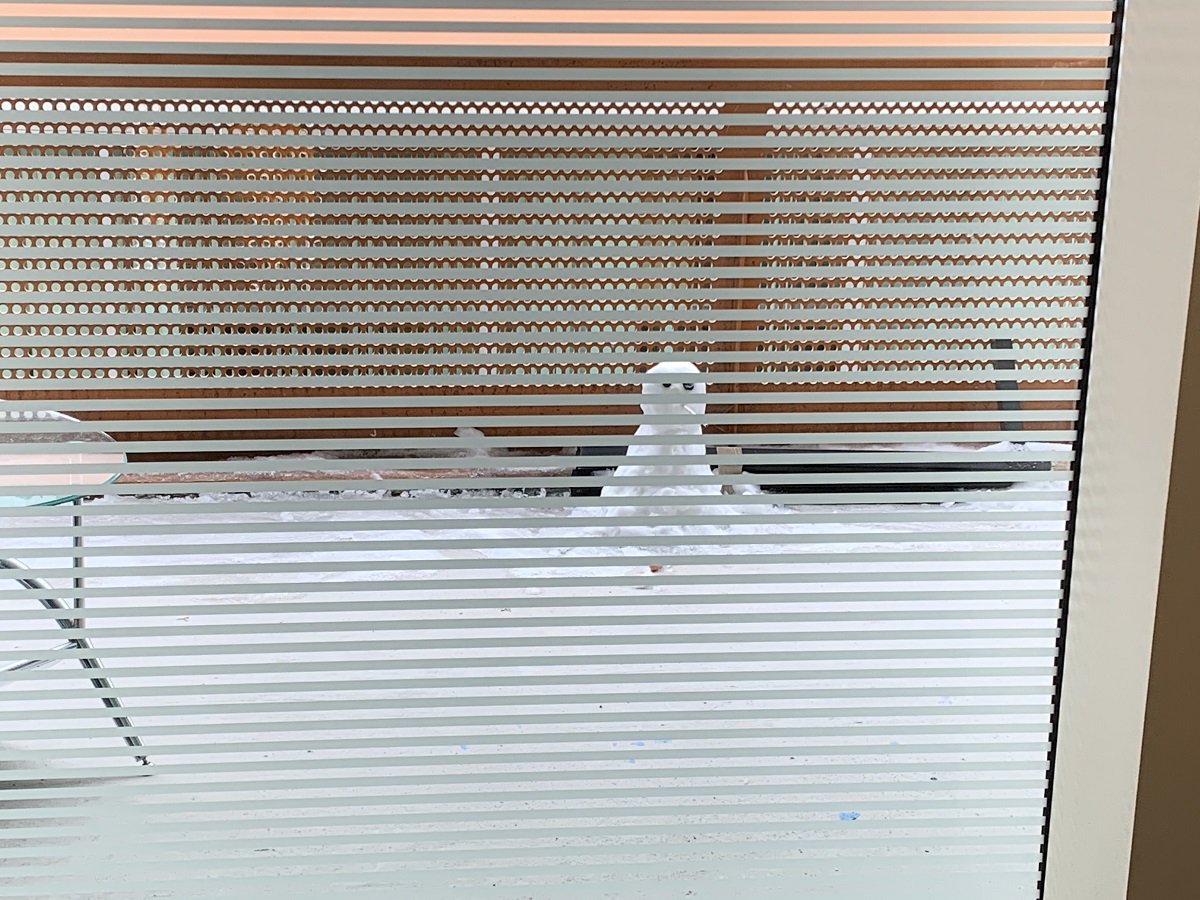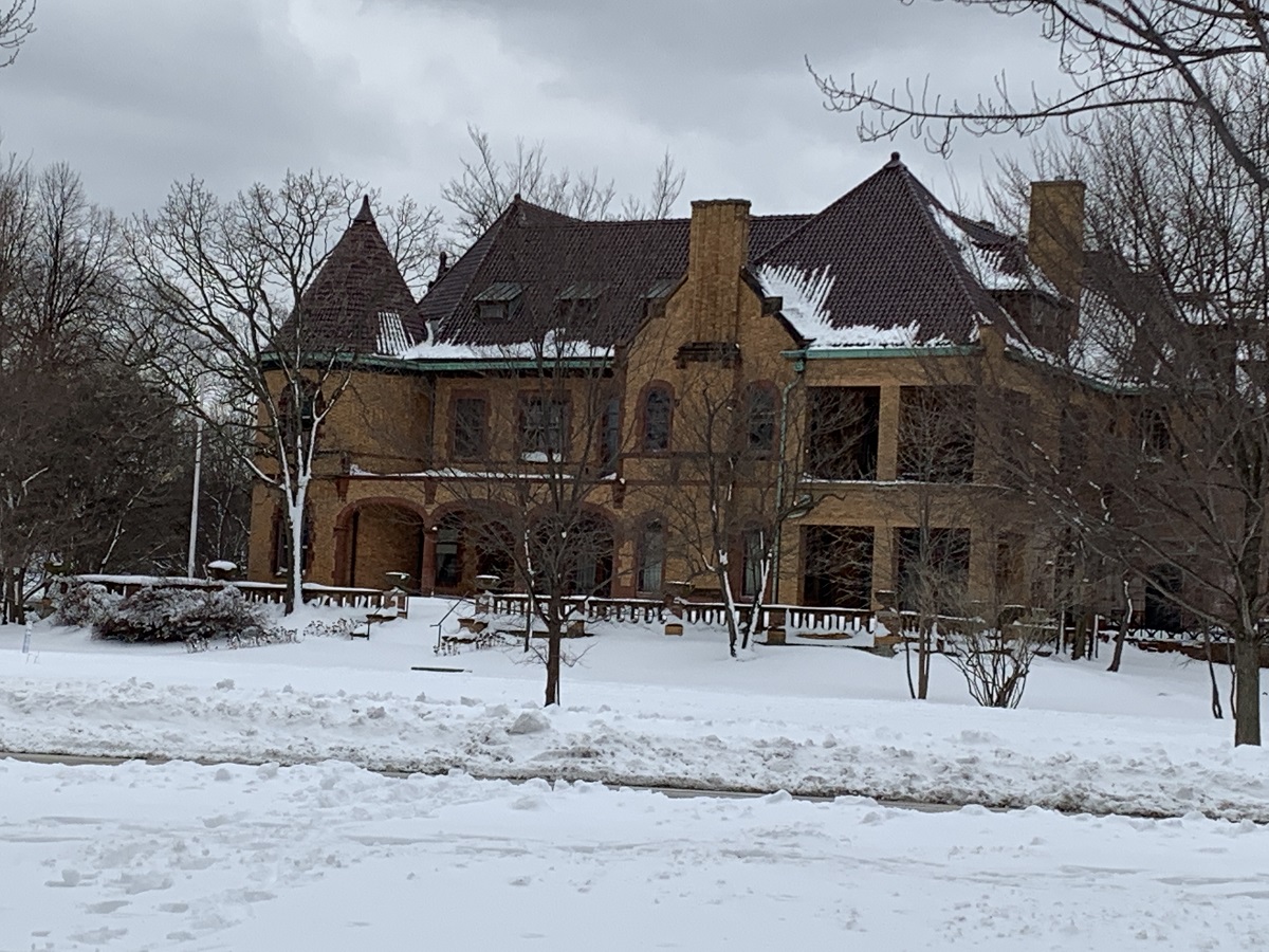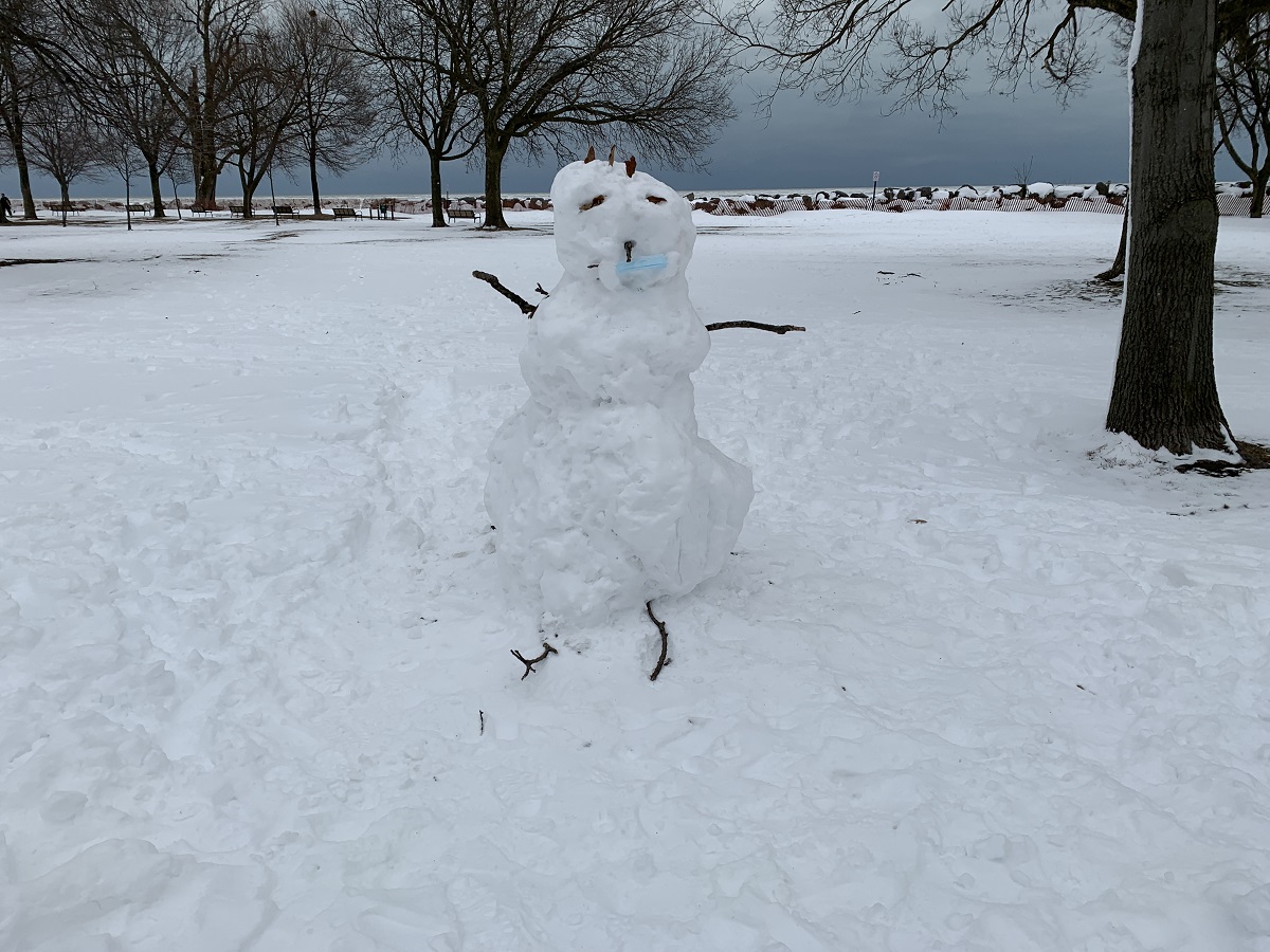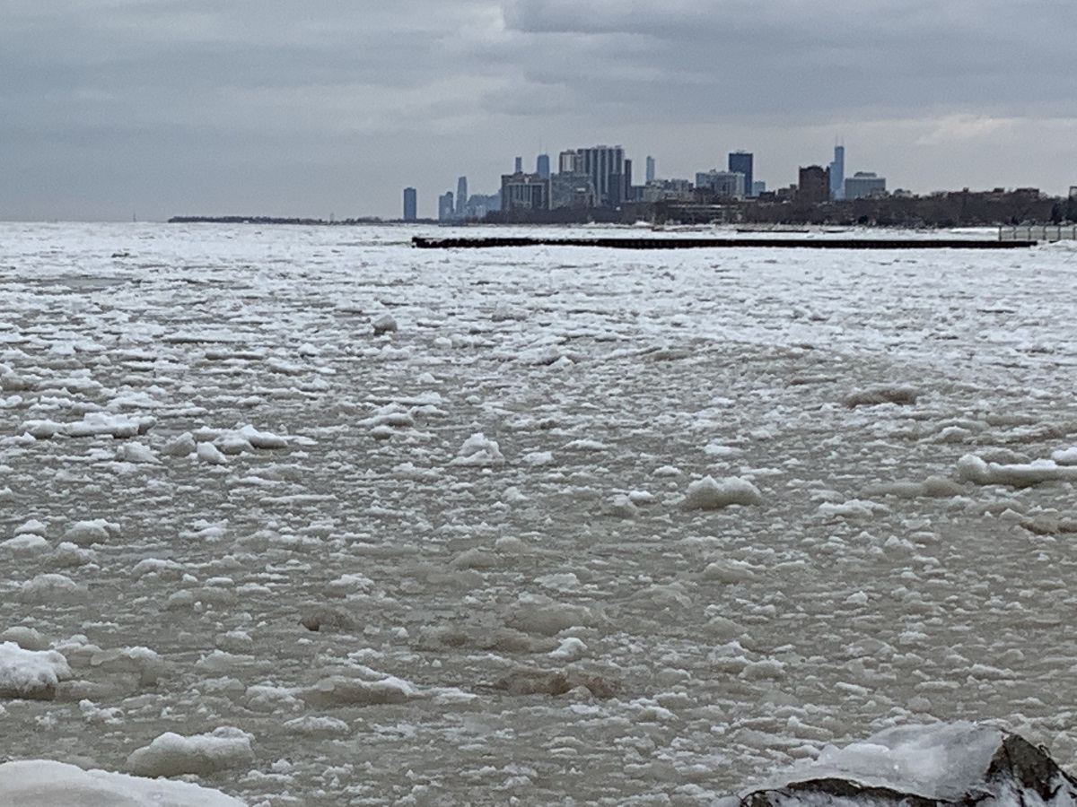 Snowdrifts and Lake Michigan from Greenwood Beach restrooms