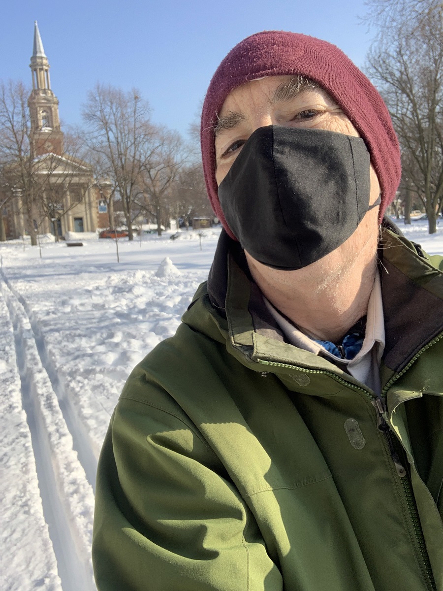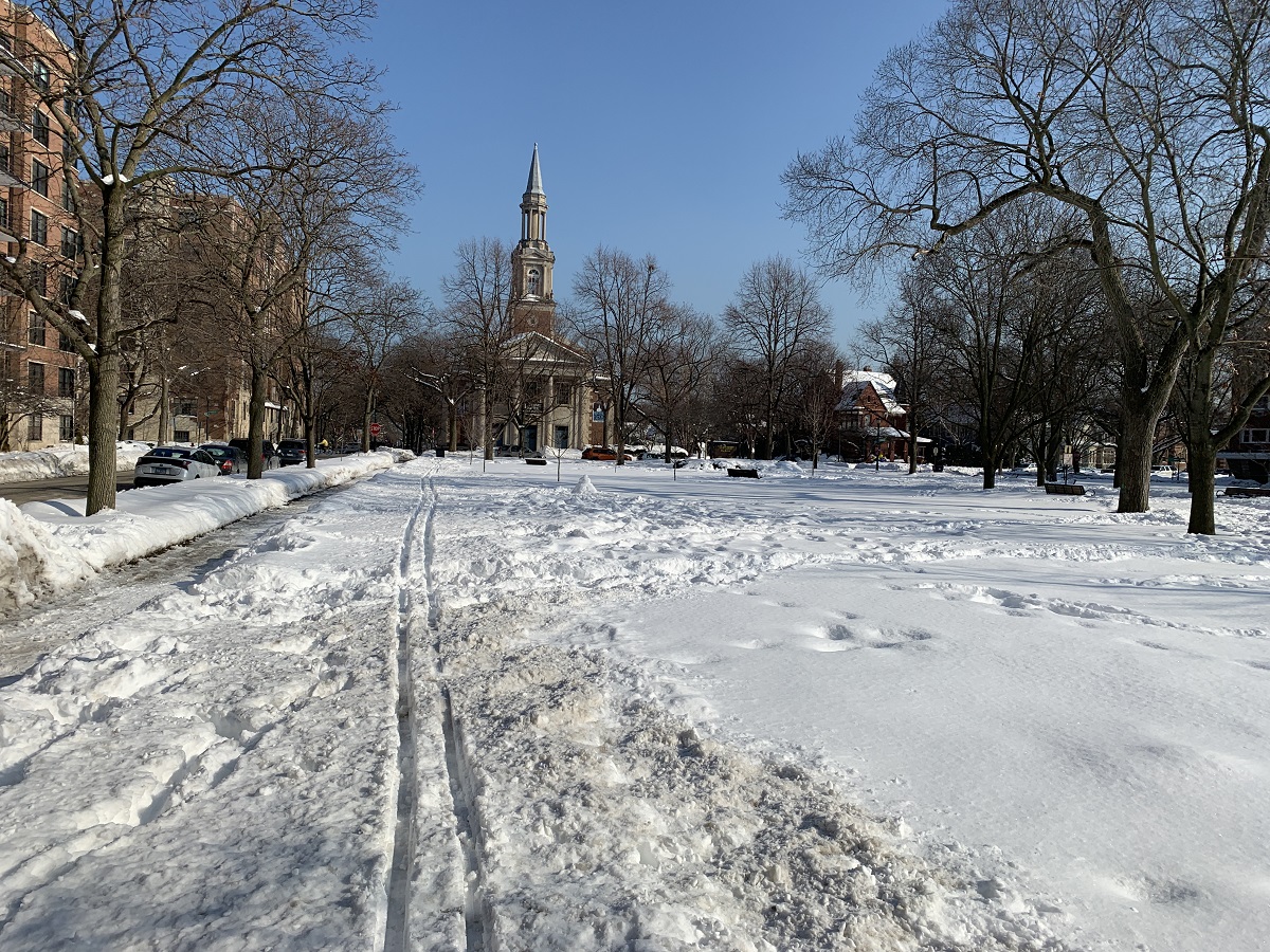 Raymond Park, Evanston with Andy's XC ski tracks and Congregational Church