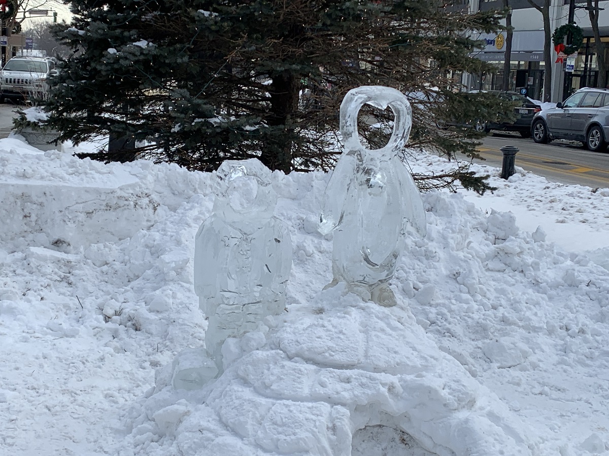 Ice sculptures in downtown Evanston just south of Fountain Square