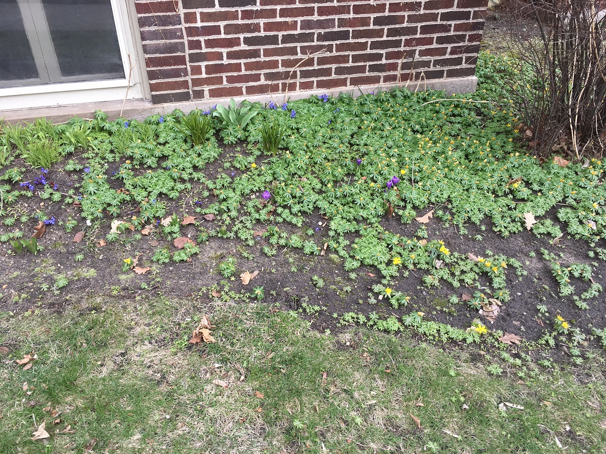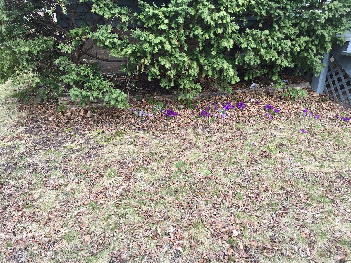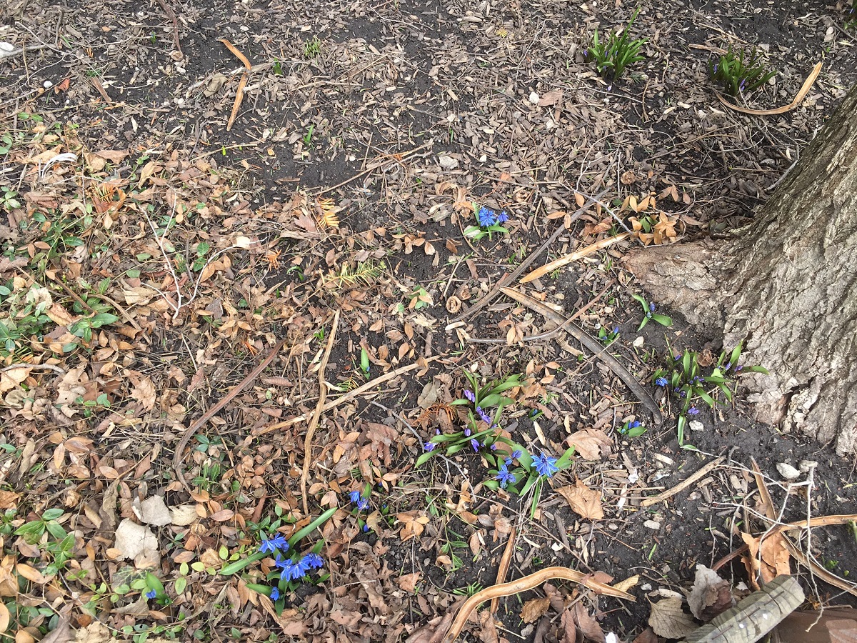 Bluebells, crocuses, and yellow flowers on Maple St.