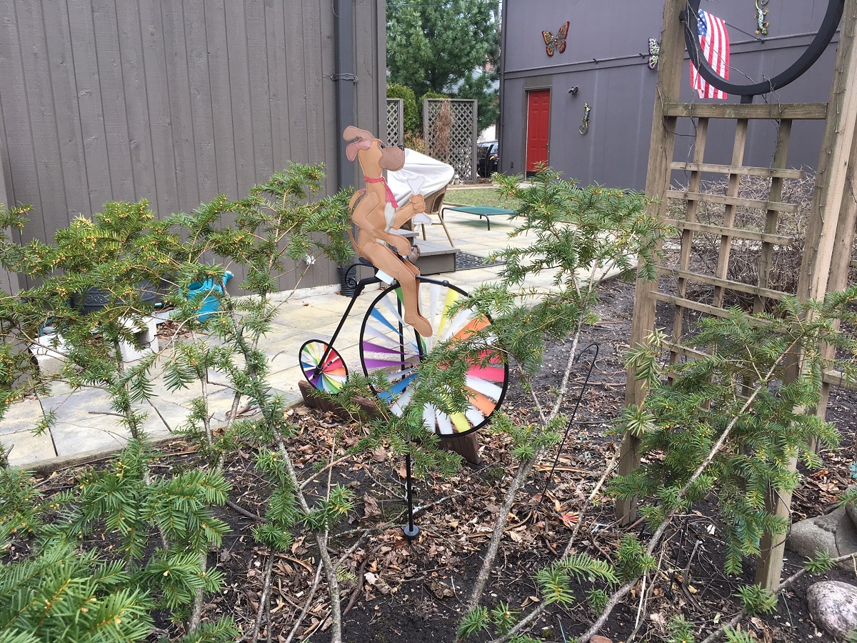 Colorful cyclist as a windmill on Noyes