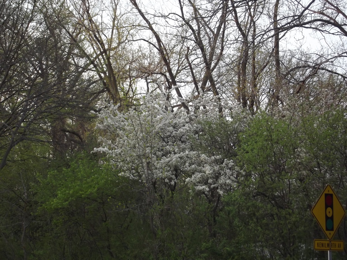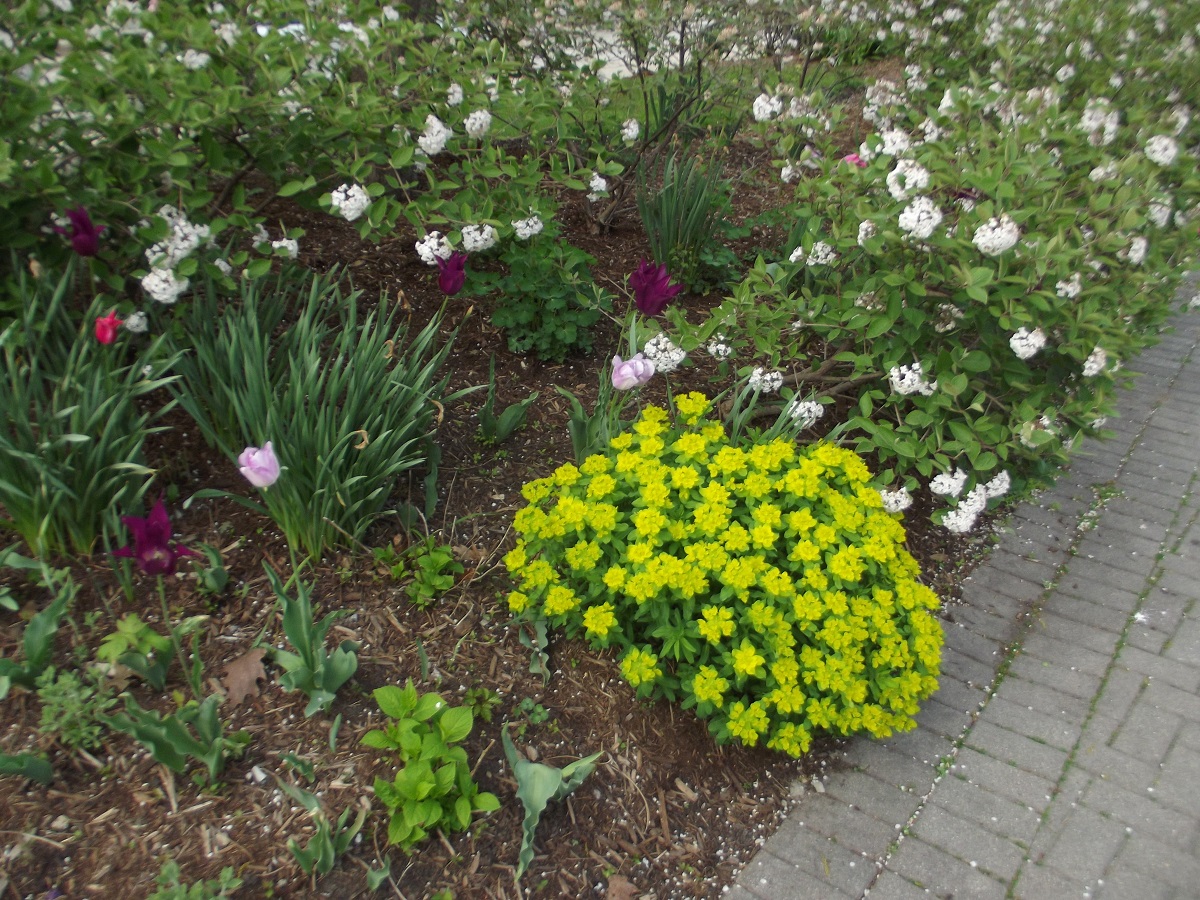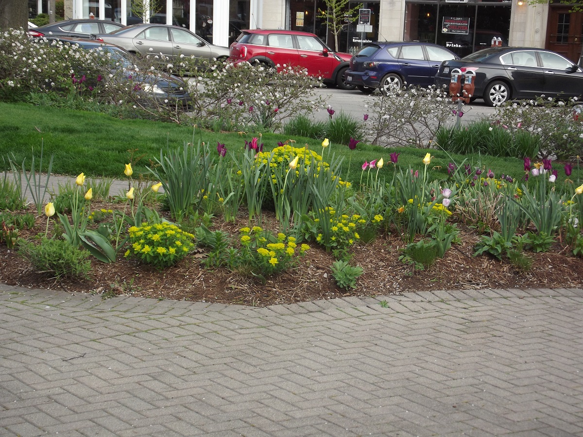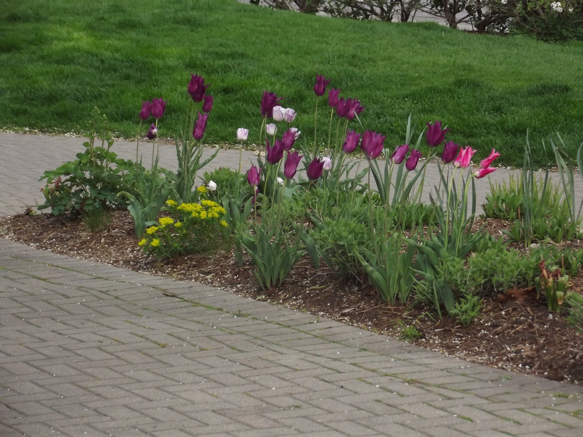 Tulips yellow and white flowers in park at Clark, Sherman and Elgin