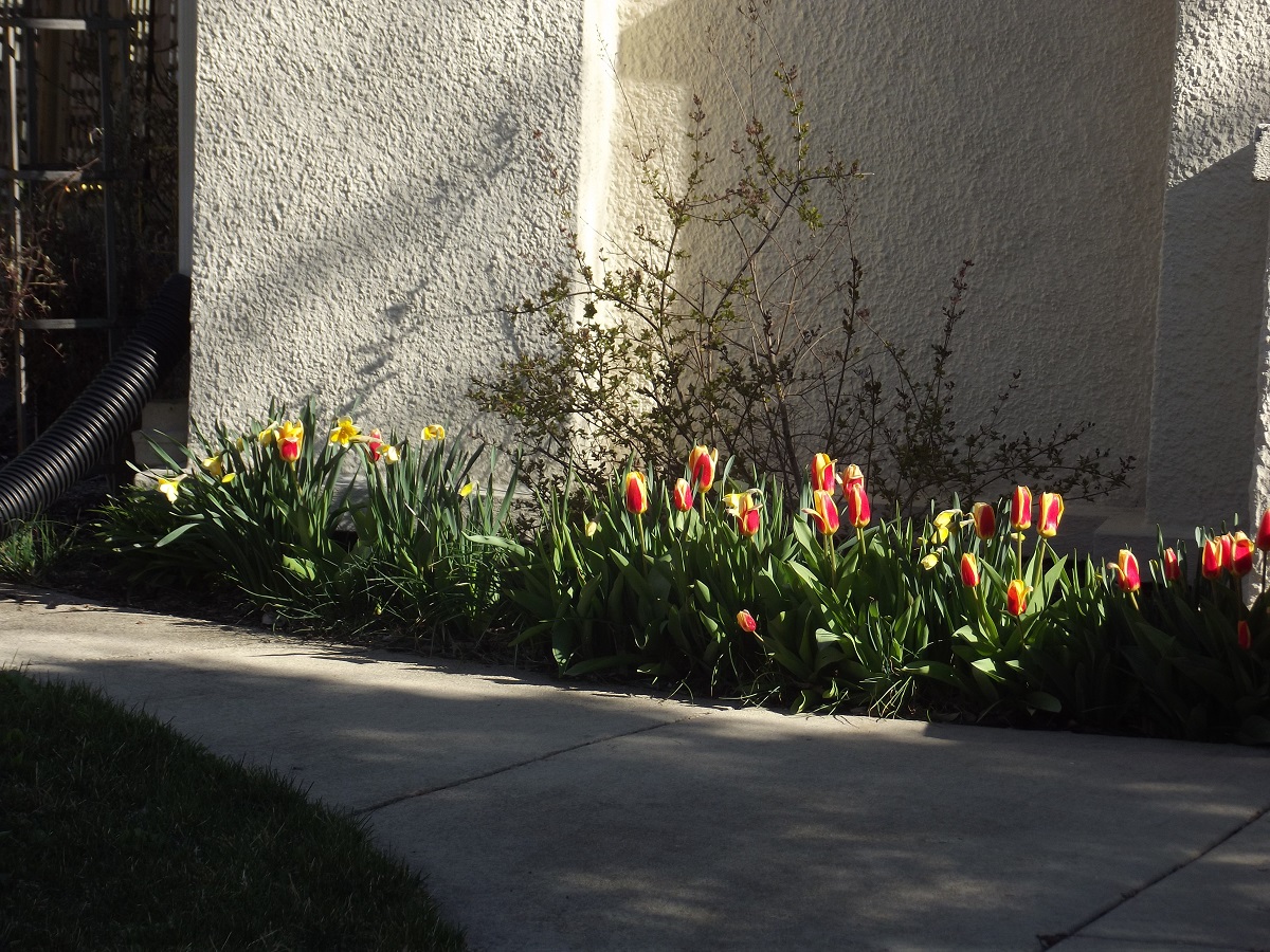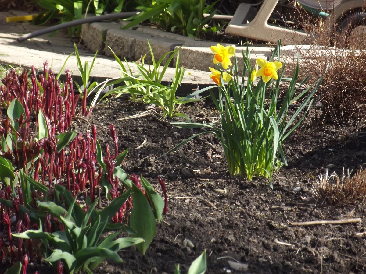 Tulip amd painese leaves starting up with Daffodils on Lake Ave.