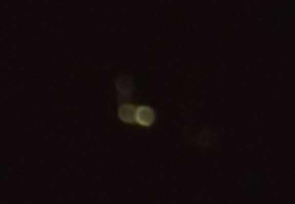 December 22 -- Star of David (blurred} Jupiter (below) and Saturn (much lighter above) long exposure with my Fujifilm larger telephoto lense without a tripod