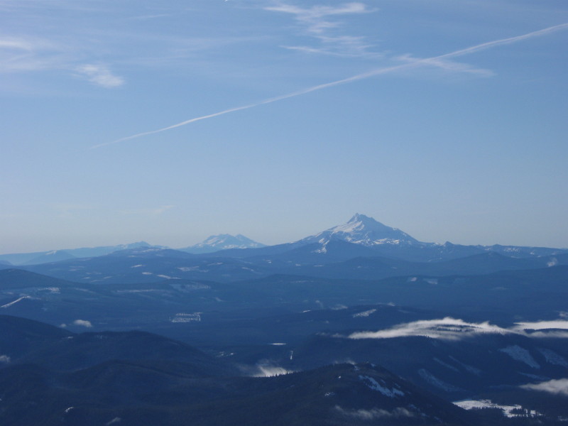 The Three Sisters and Mount Jefferson from 2/3 up Mount Hood