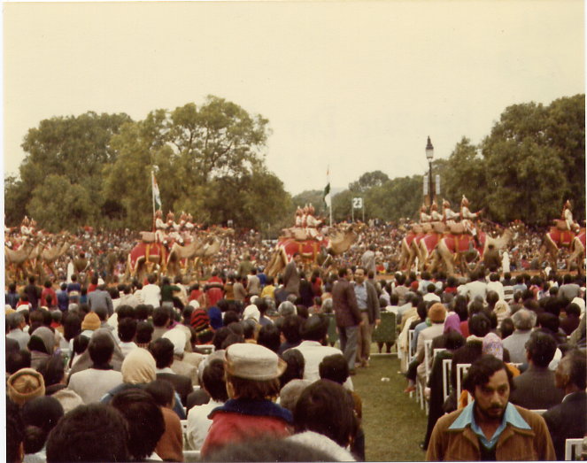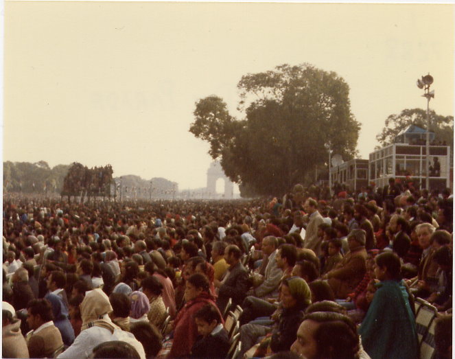The Republic Day Parade, thousands of people by the huge arch India Gate -- slightly similar to the Arch of Triumph in Paris, France