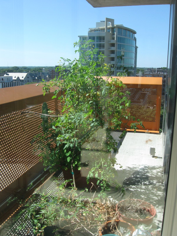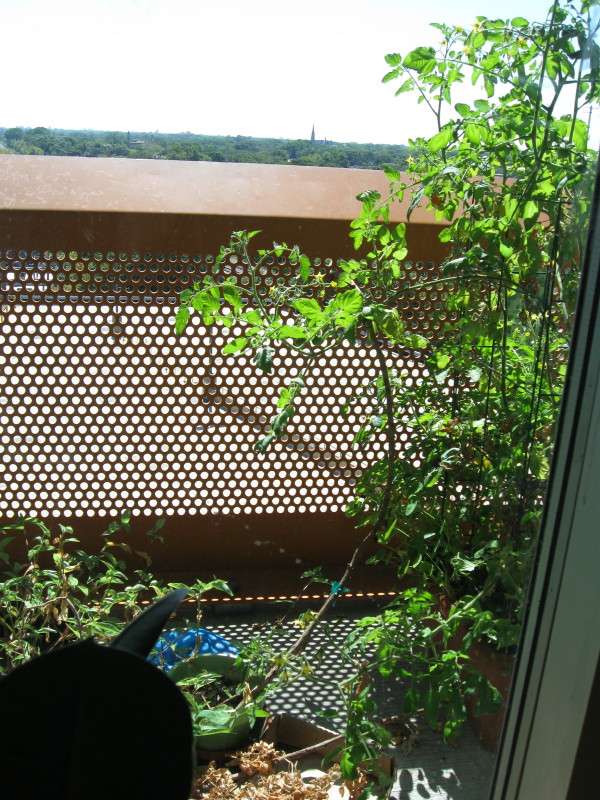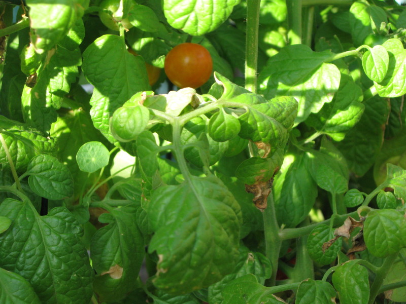 On September 13 -- Many more ripe tomatoes coming from top and branch to the west