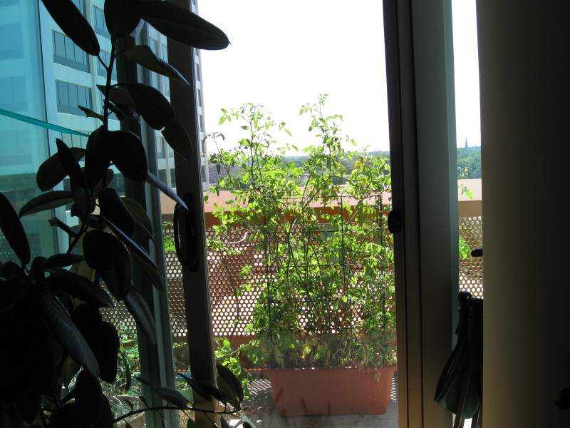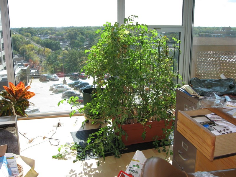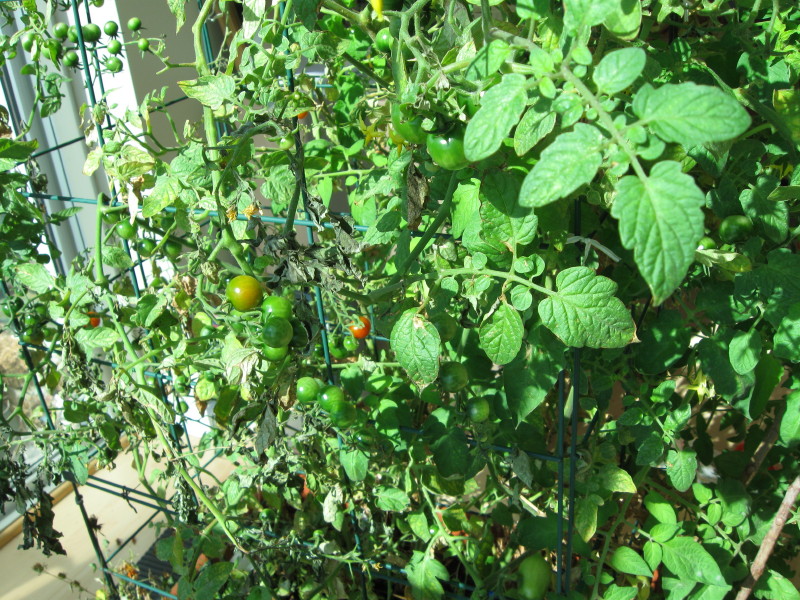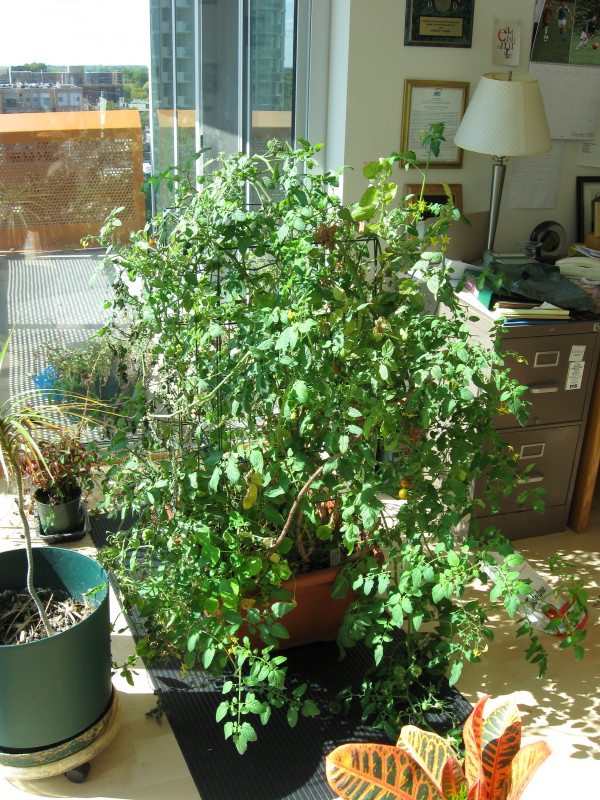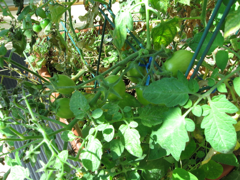 Tomatoes on plants inside 10/05/09