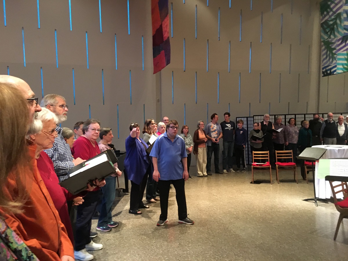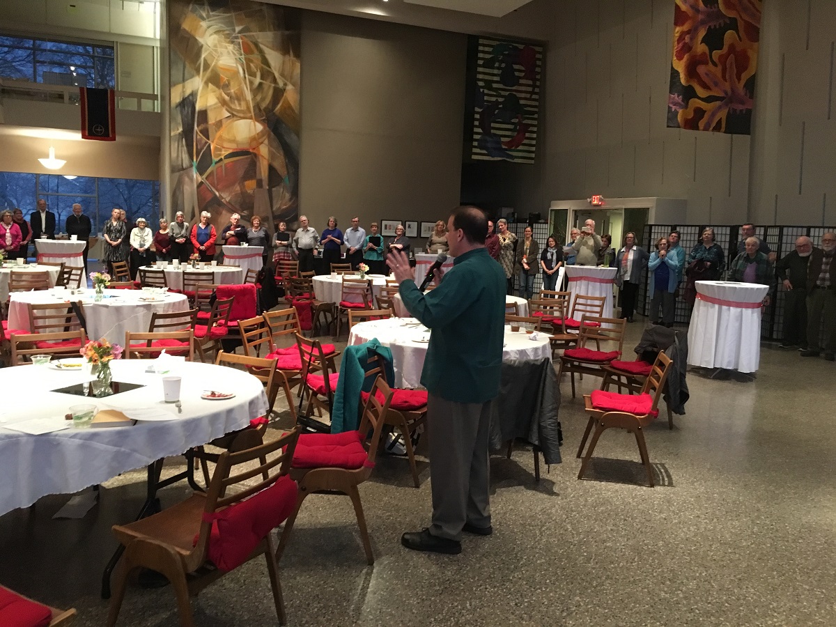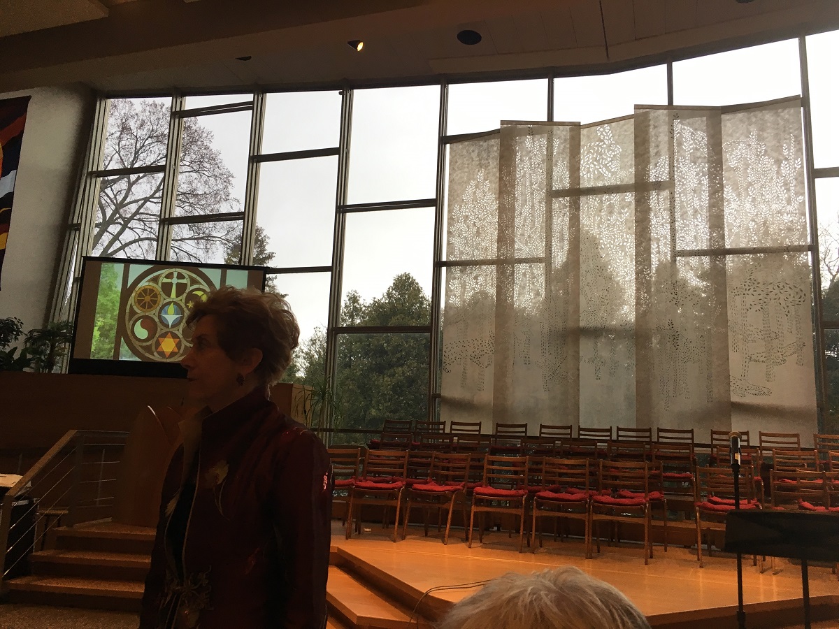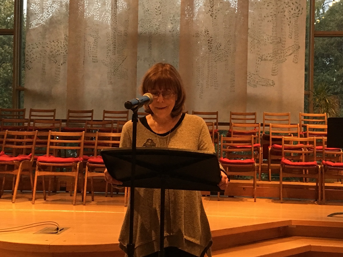 Vickie Hellyer speaking just before we sing Galic Blessing