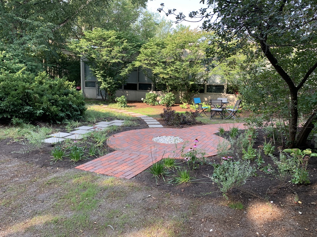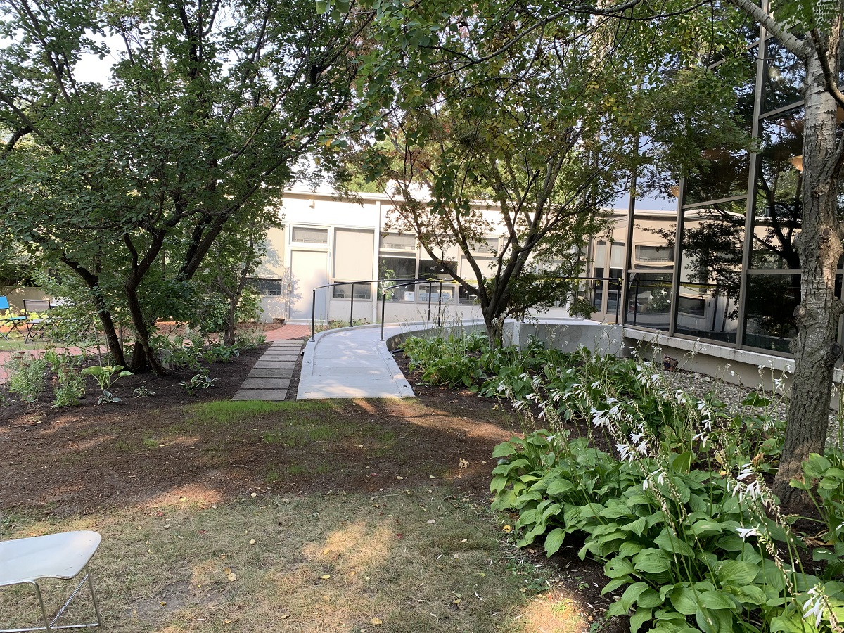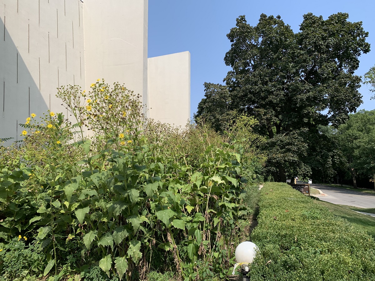 Marjorie rain garden outside with tall yellow flowers just east of UCE