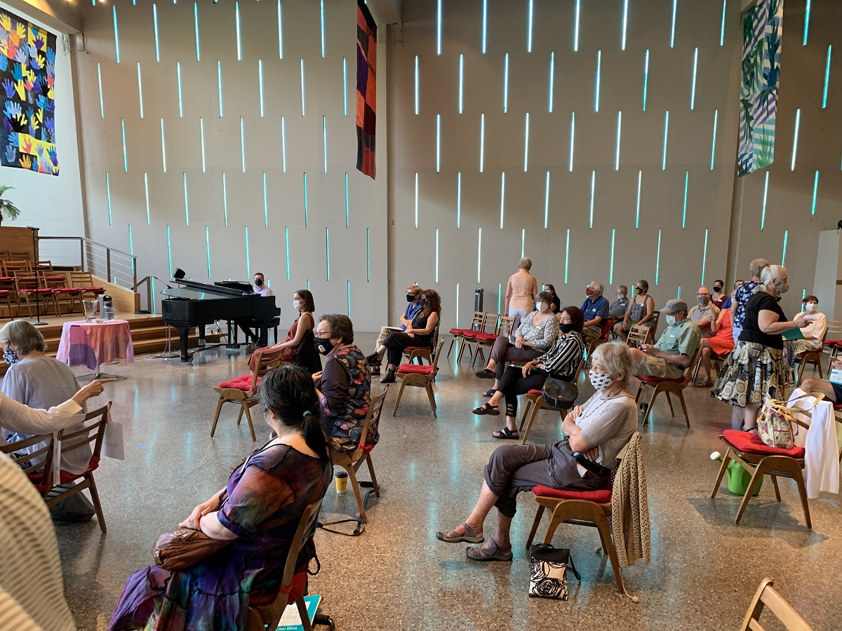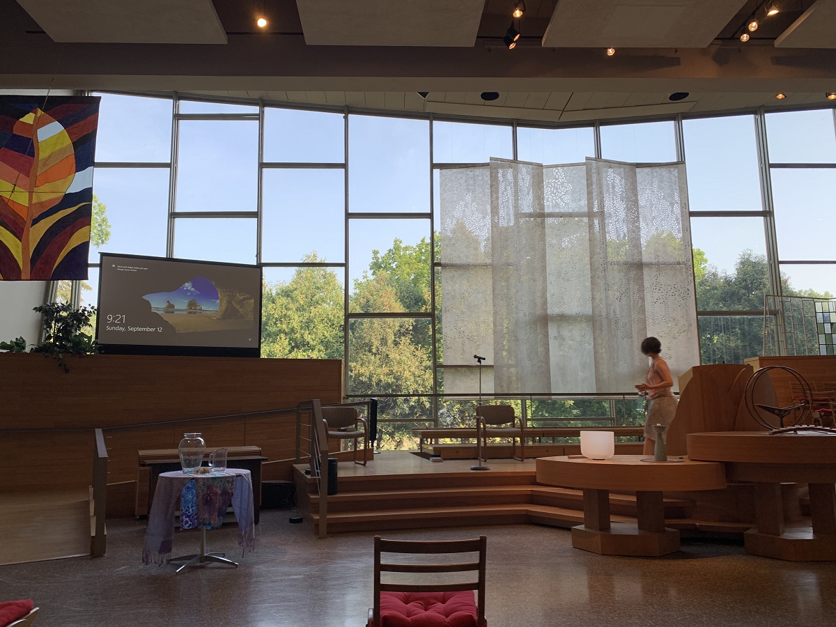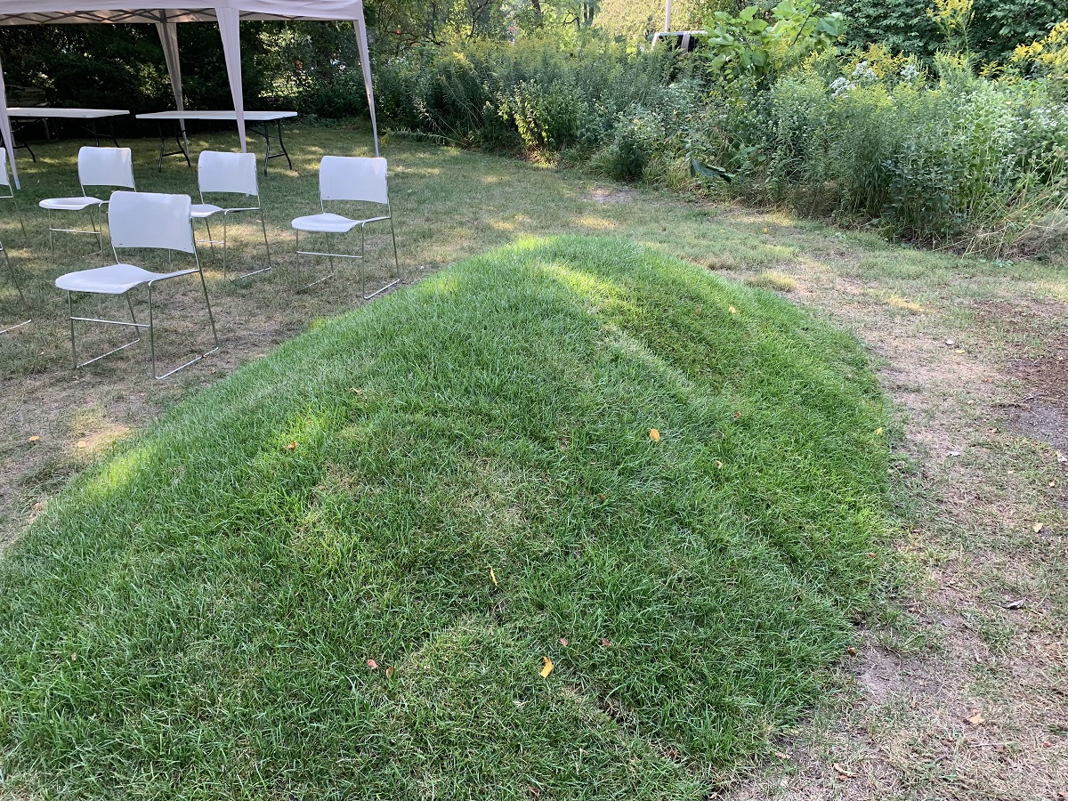 Marjorie rain garden outside with tall yellow flowers just east of UCE