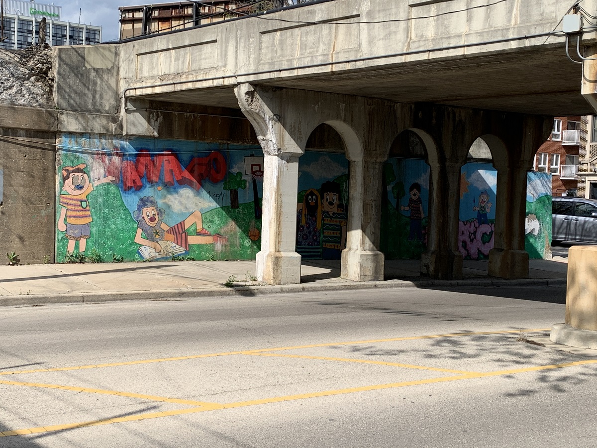 Mural under "L" along Greenwood Street