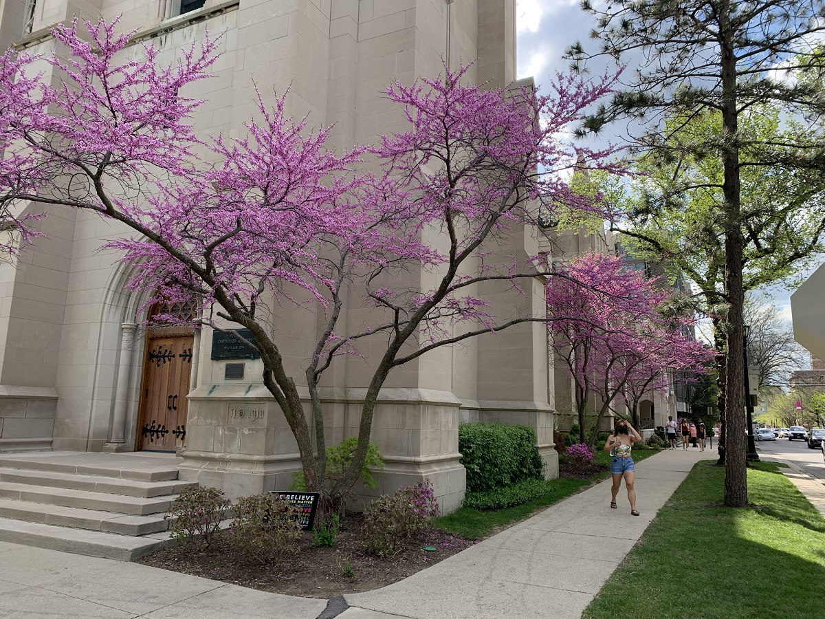 Redbud trees by First United Methodist Church