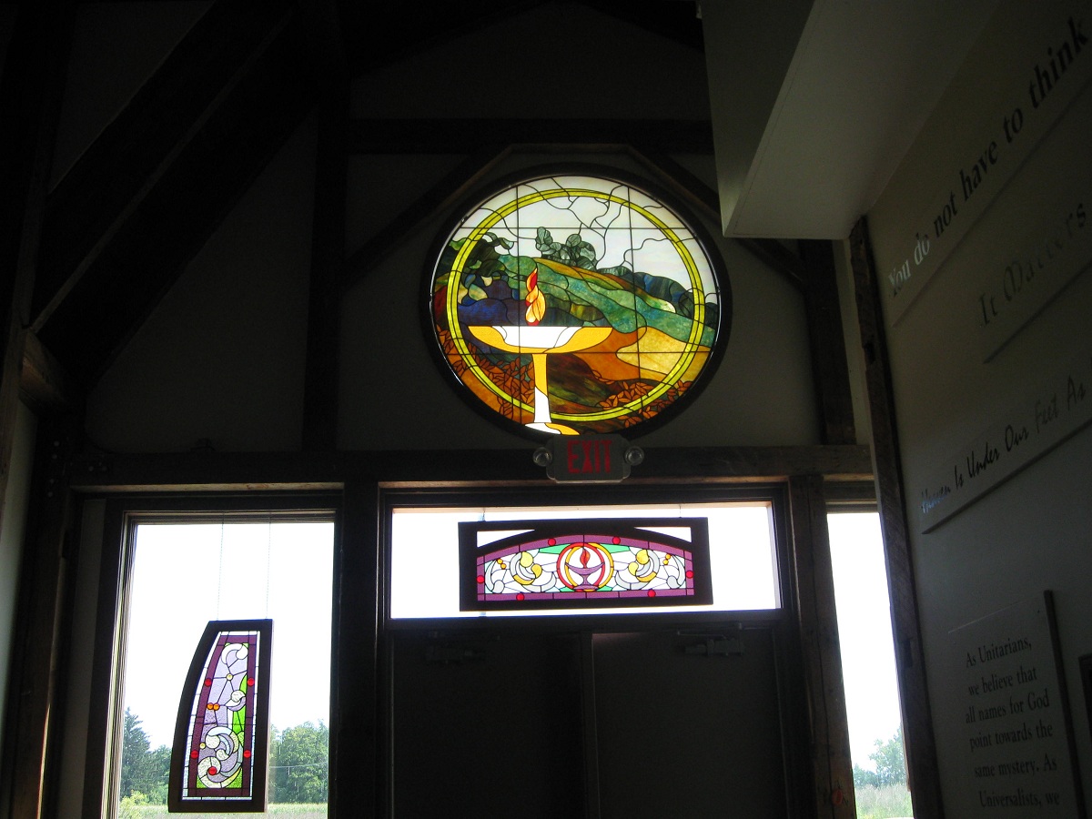 Beautiful stained glass at entrance to Unitarian Universalist Church of Elgin