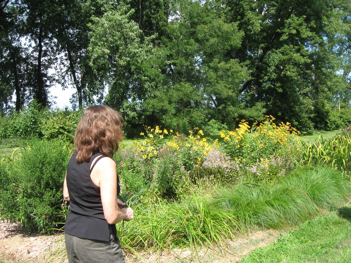 Mary Alice describing another garden of native plants -- tall Black-eyed Susans and others