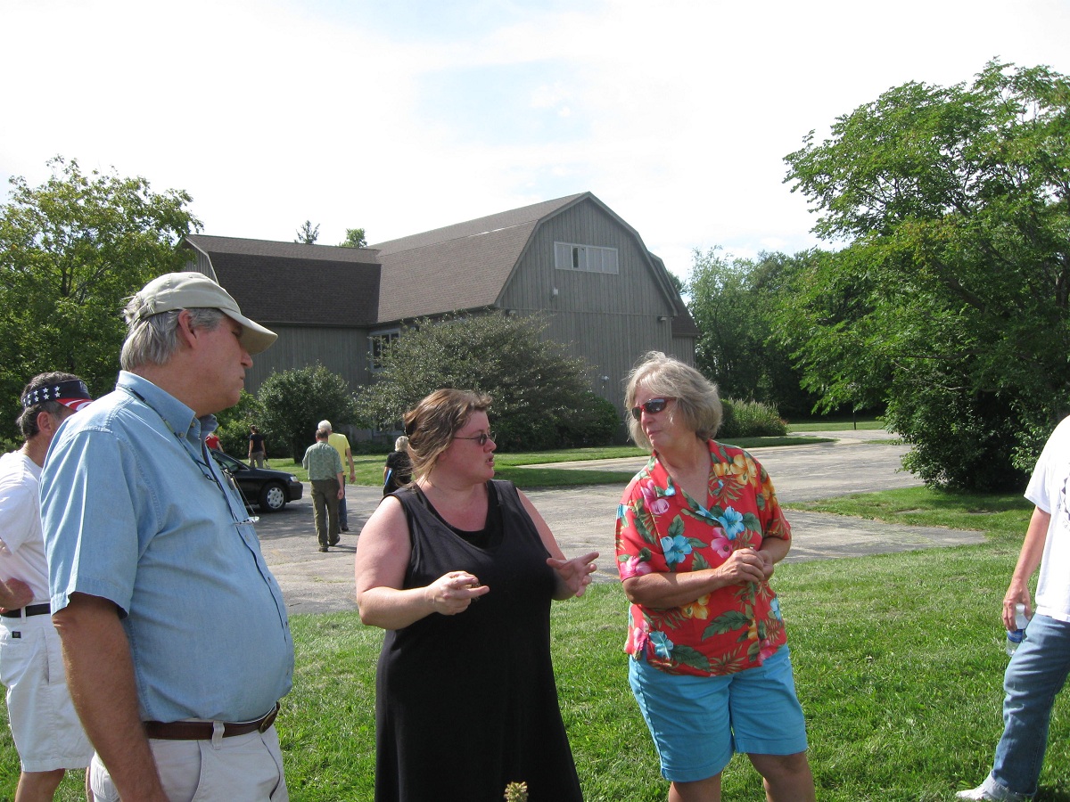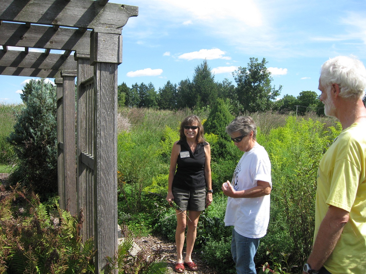 Mary Alice Masonick (center) describing native plants with Allan Lindrup (left) and others