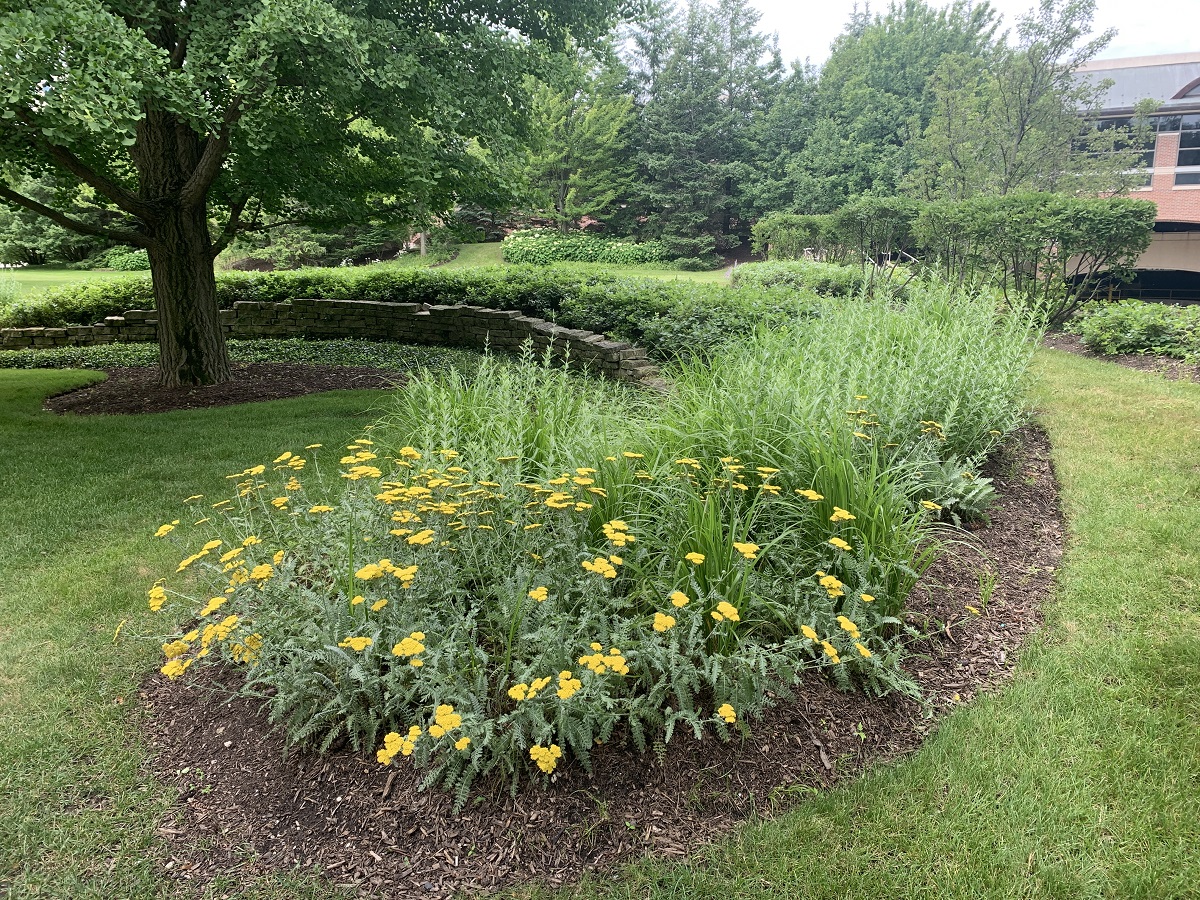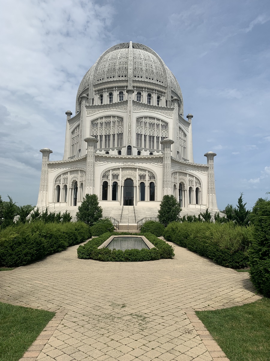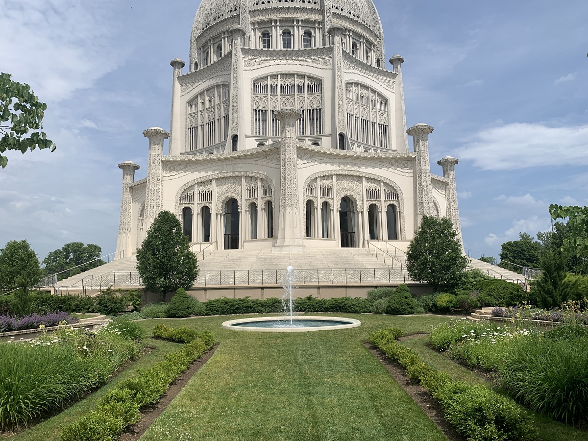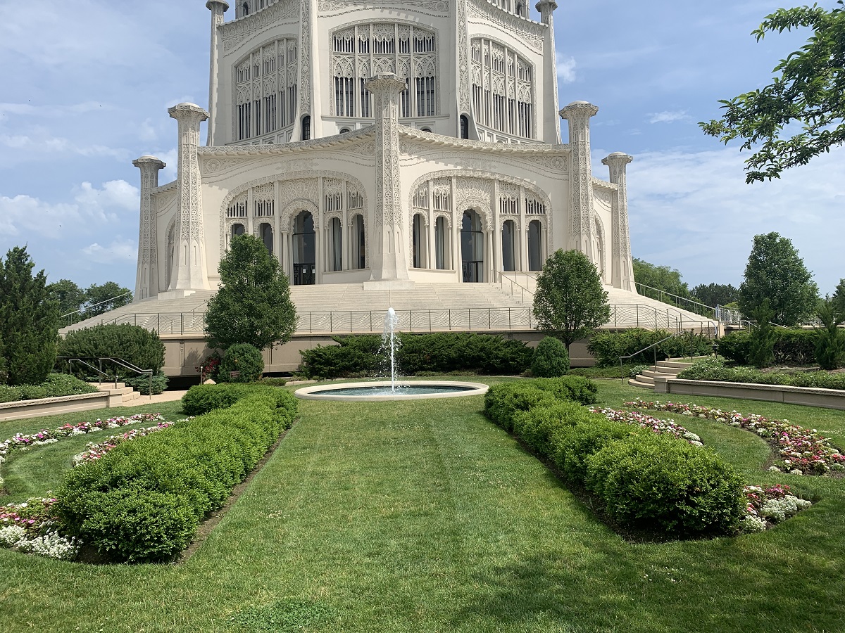 Lagoon with waterfall for main entrance to Baha'i Temple.