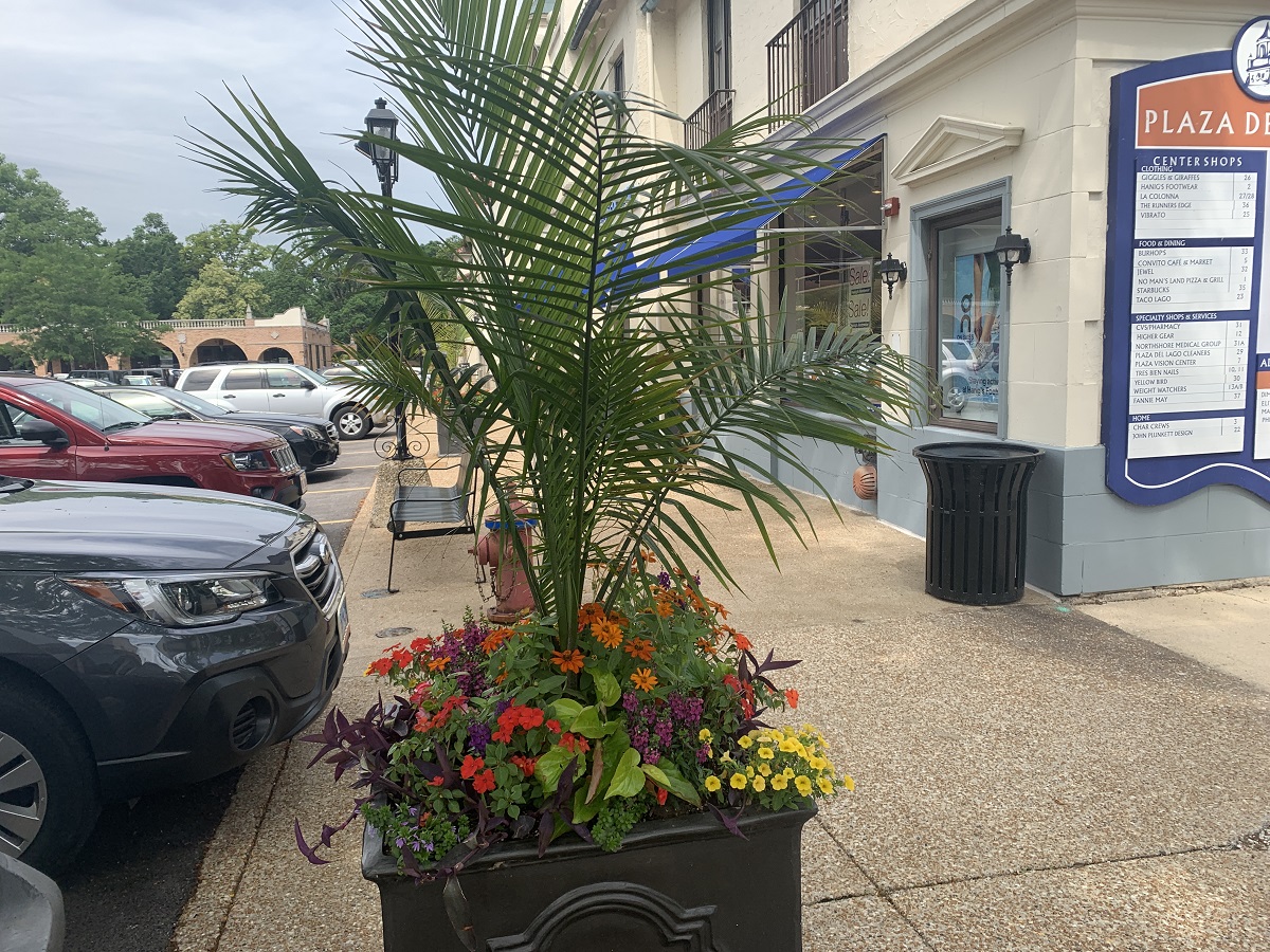 Roses with colius in pots with peace sith on Sheridan at 7th in Wilmette
